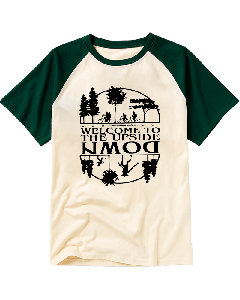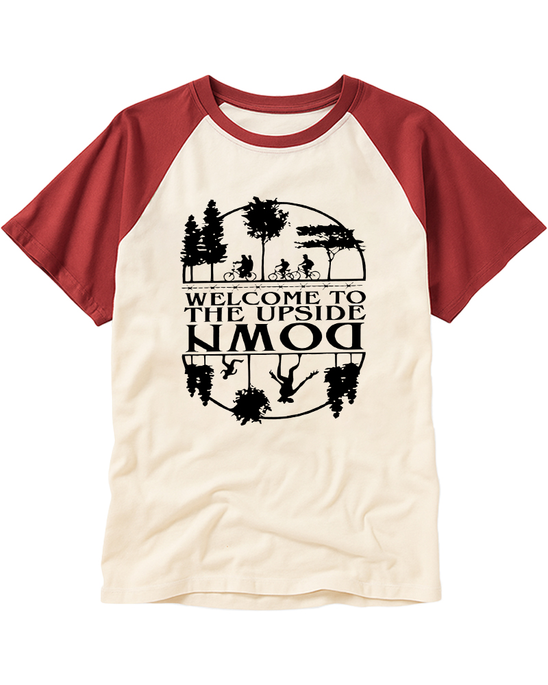 TheRetroTee Welcome To The Upside Down Raglan Baseball T-Shirt$29.99 USD -