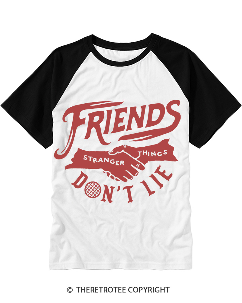 TheRetroTee Friends Don't Lie 1980s Raglan Baseball T-Shirt$29.99 USD -