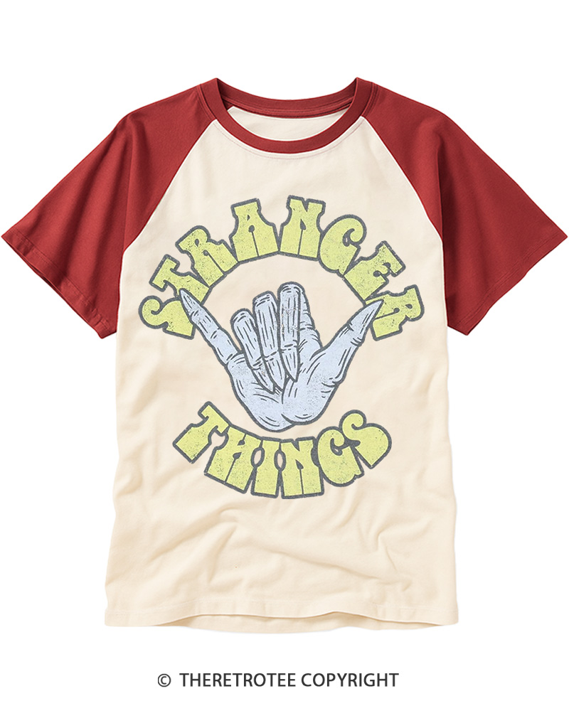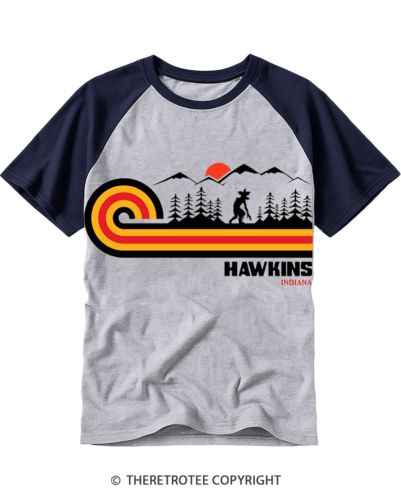 TheRetroTee Visit Hawkins Retro 70s Vibe Raglan Baseball T-Shirt$29.99 USD -