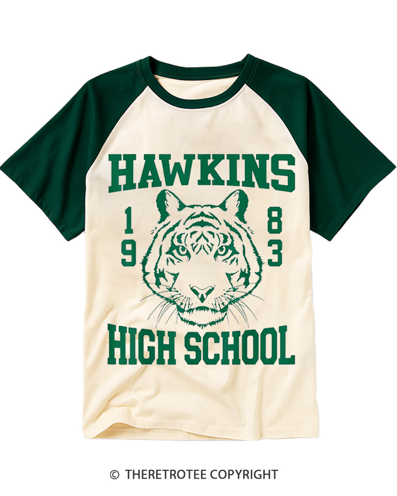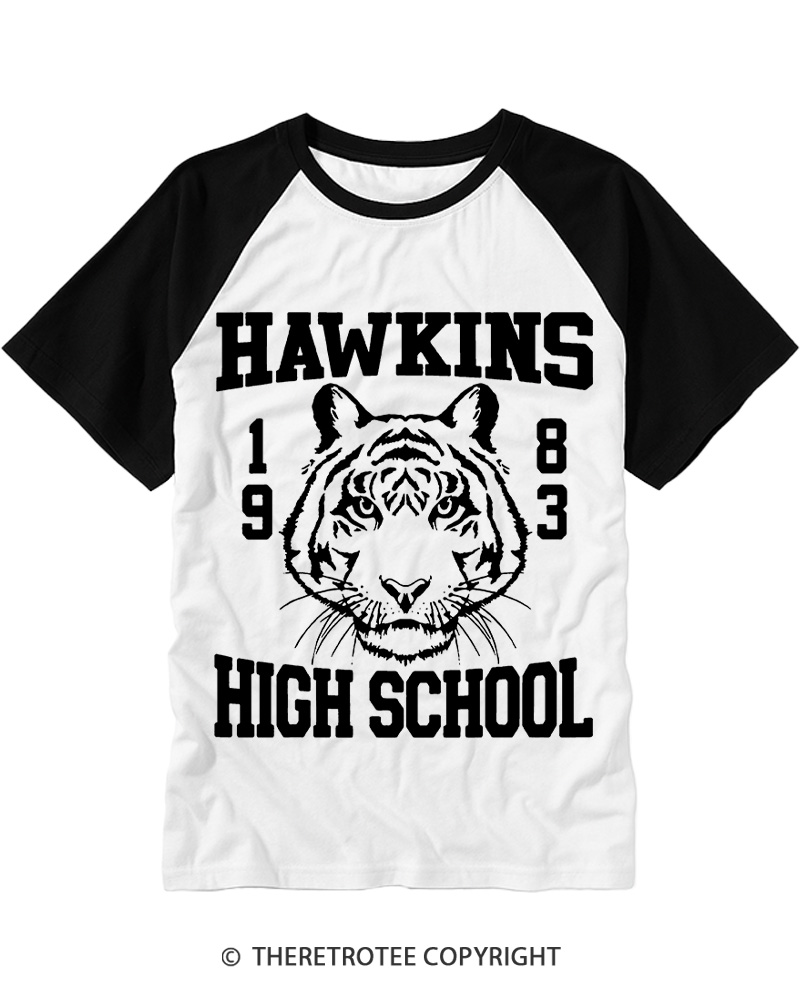 TheRetroTee Hawkins High Tiger 1983 Raglan Baseball T-Shirt$29.99 USD -