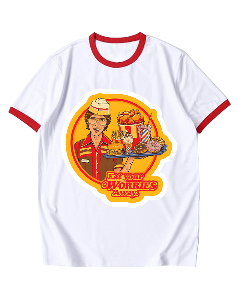 TheRetroTee Eat Your Worries Magnet Ringer T-Shirt$23.99 USD -