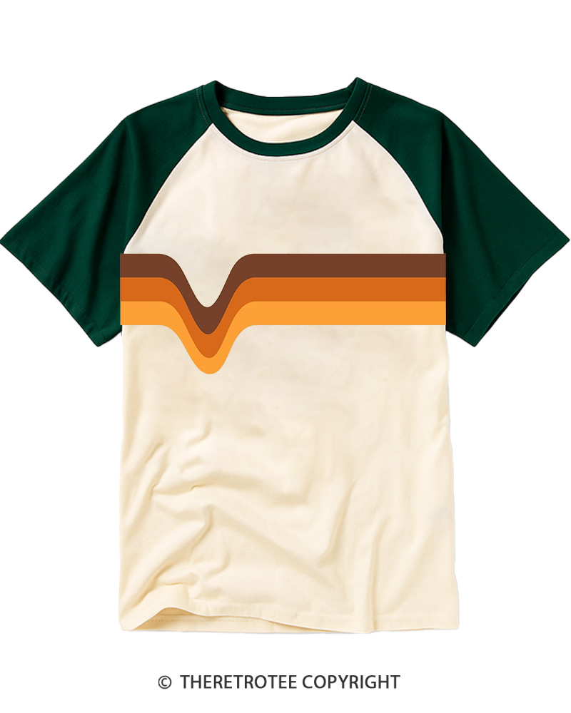 TheRetroTee 70's Stripes Brown Orange Yellow Raglan Baseball T-Shirt$29.99 USD -