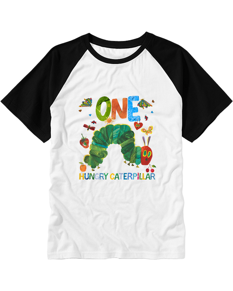 TheRetroTee One Hungry Caterpillar Birthday Raglan Baseball T-Shirt$29.99 USD -