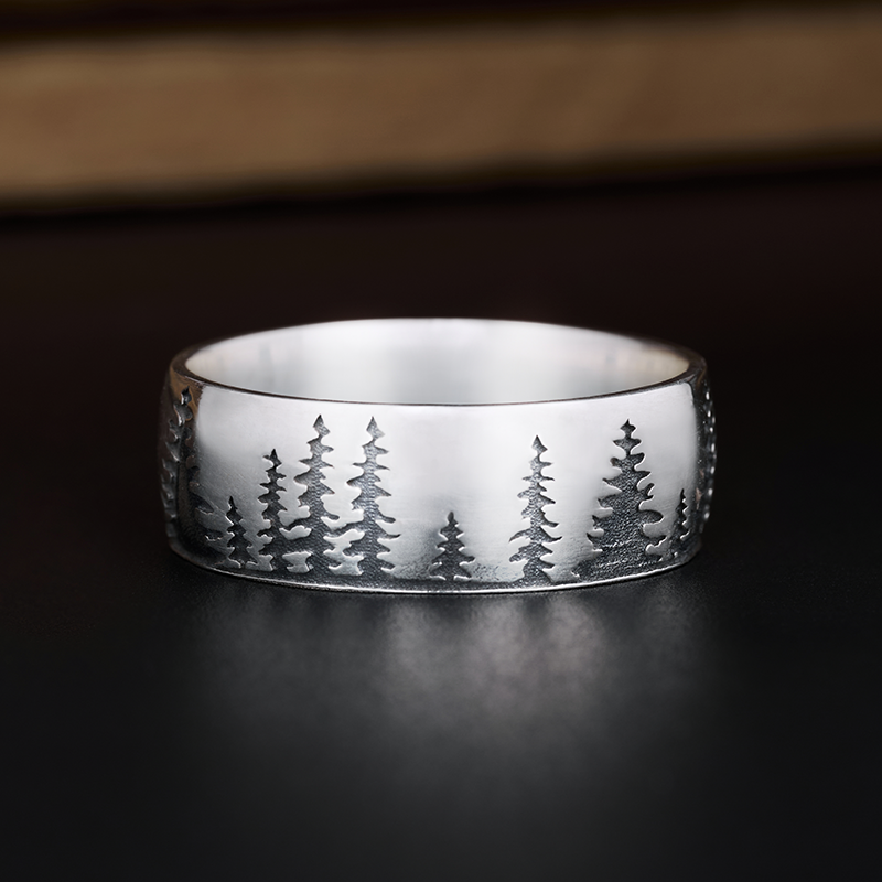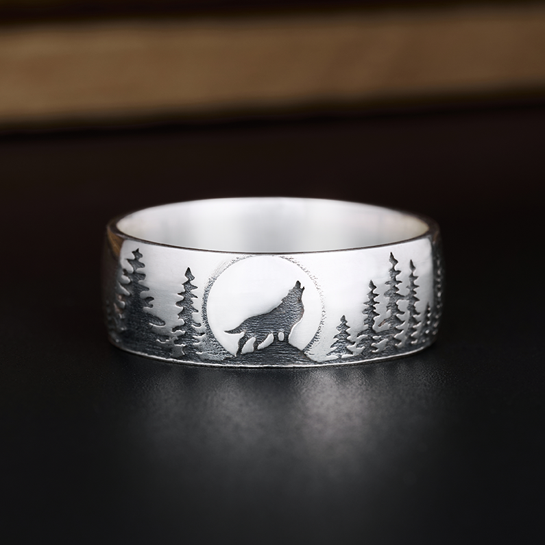 TheRetroTee Vintage Lone Wolf Moonlit Forest Ring