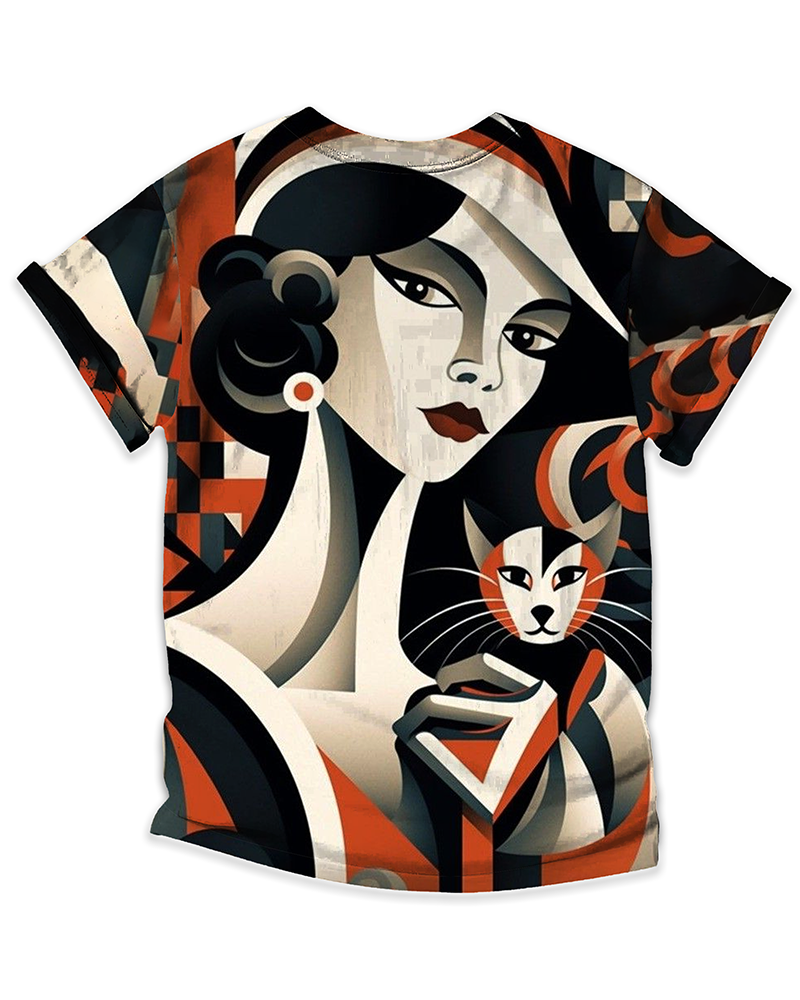 TheRetroTee Art Deco Cat Lady All-Over Print T-Shirt$33.99 USD -