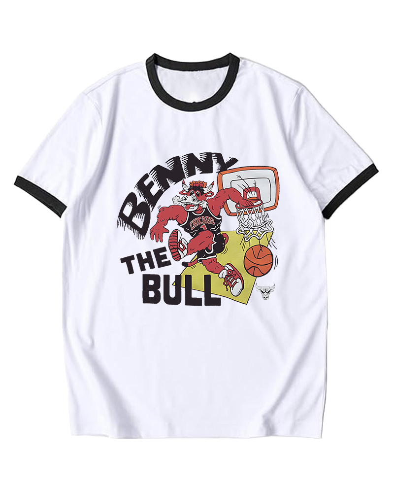 TheRetroTee Chicago Bulls Benny The Bull Cartoon Ringer T-Shirt