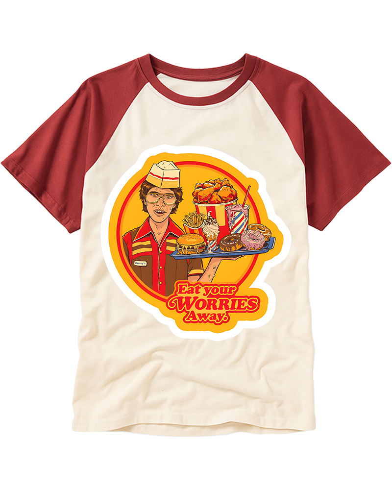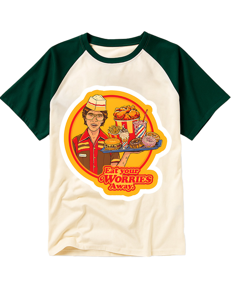 TheRetroTee Eat Your Worries Magnet Raglan Baseball T-Shirt