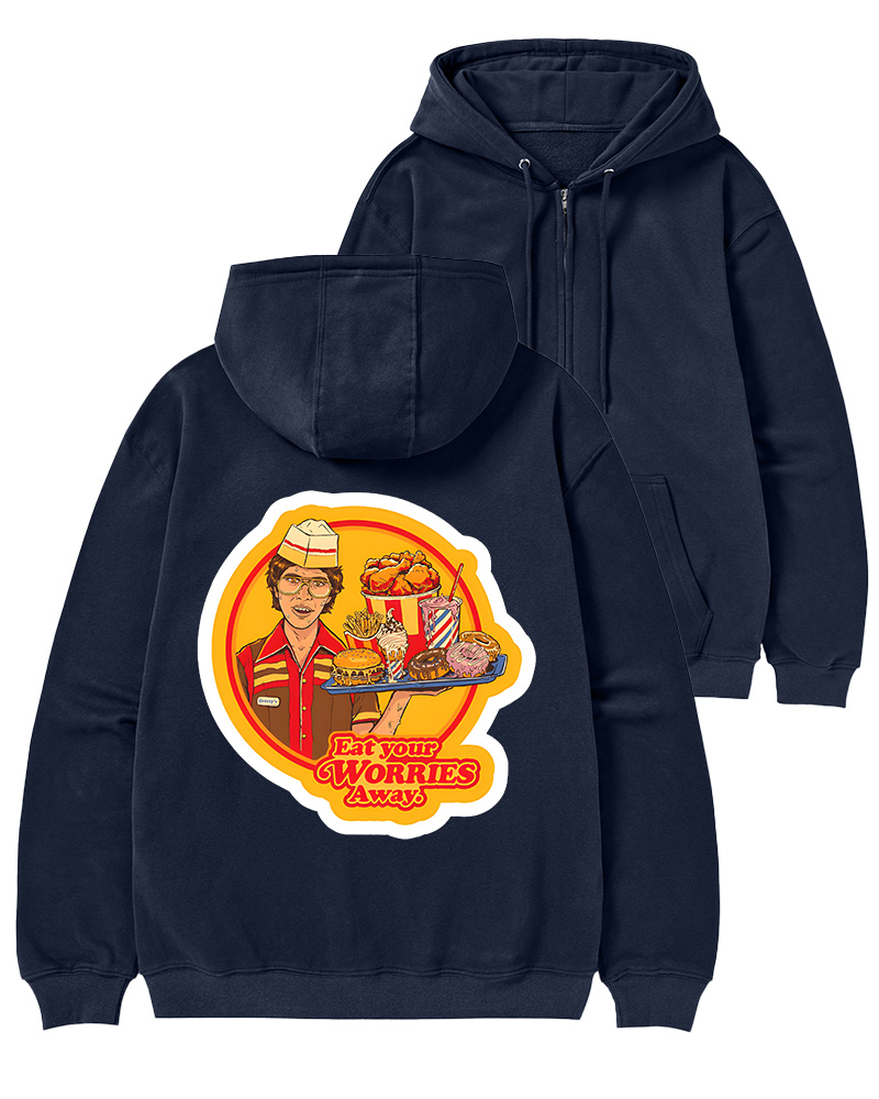 TheRetroTee Eat Your Worries Magnet Zip-Up Hoodie