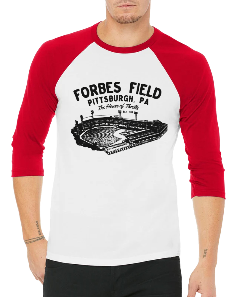 TheRetroTee Forbes Field was the home of the Pittsburgh Pirates Long Sleeve Raglan T-Shirt