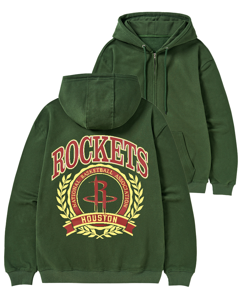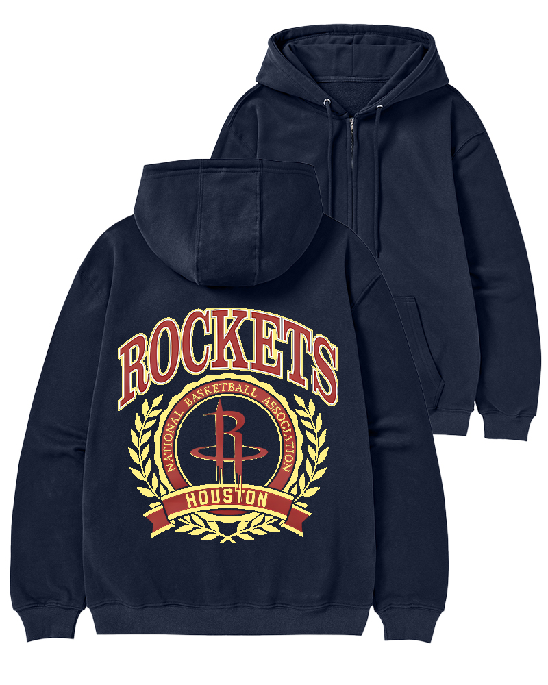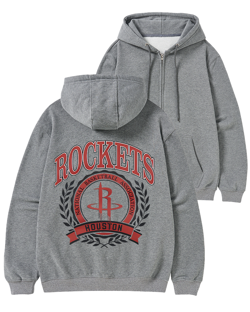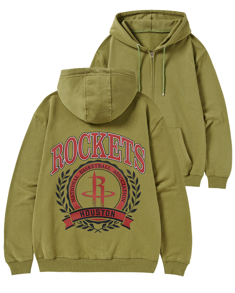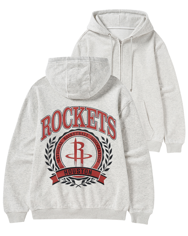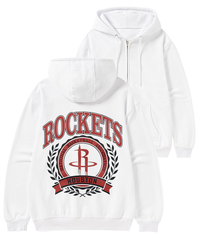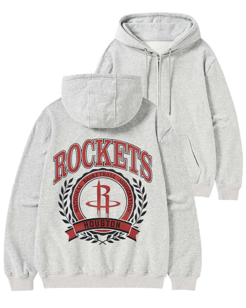 TheRetroTee Houston Rockets Crest Crewneck Zip-Up Hoodie