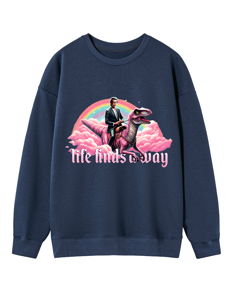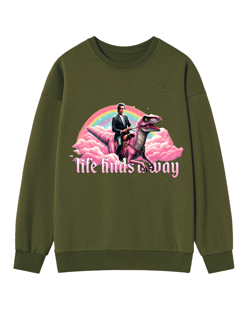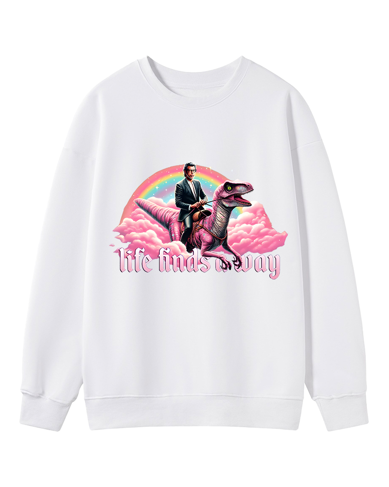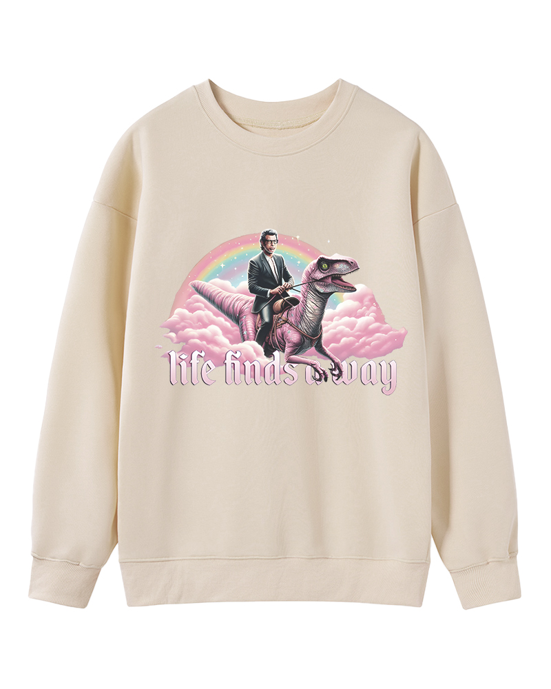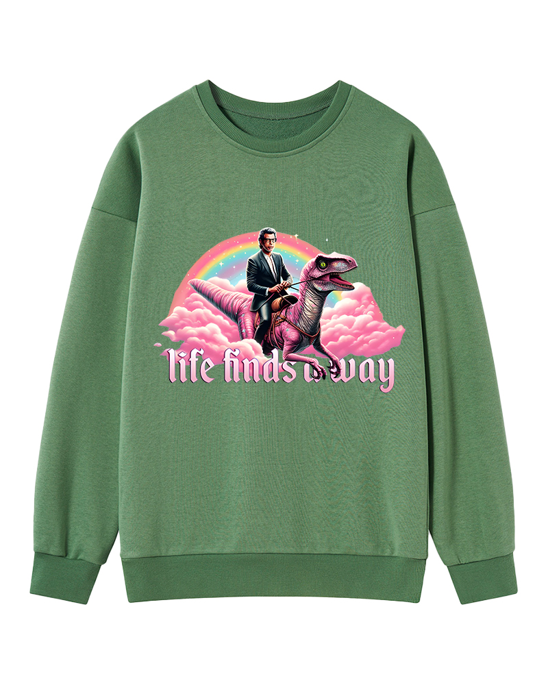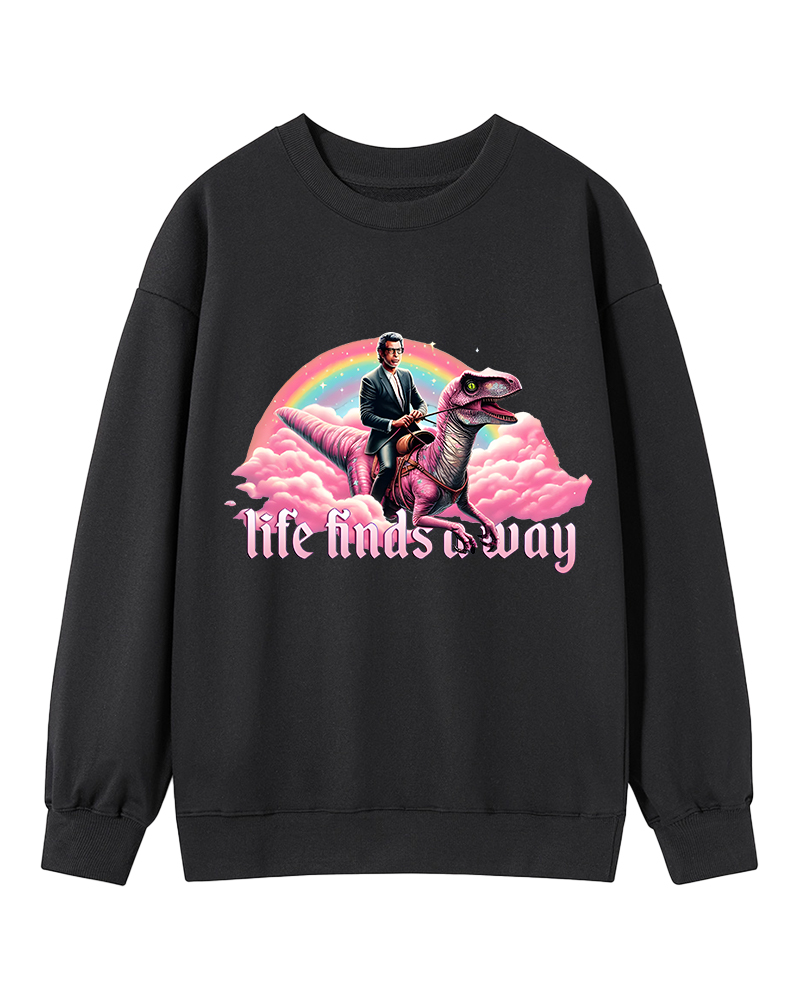 TheRetroTee Life Finds a Way Raptor Riding Jeff Sweatshirt