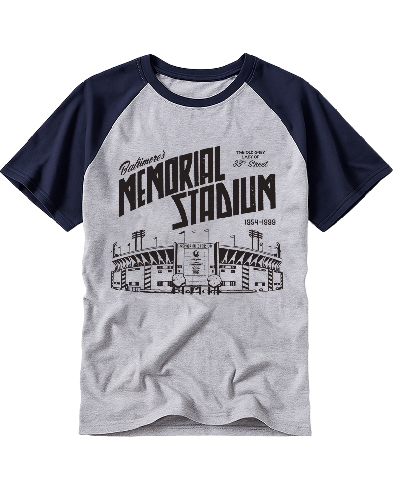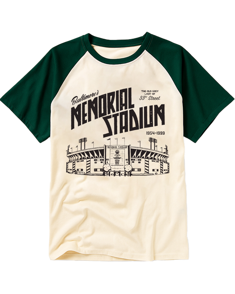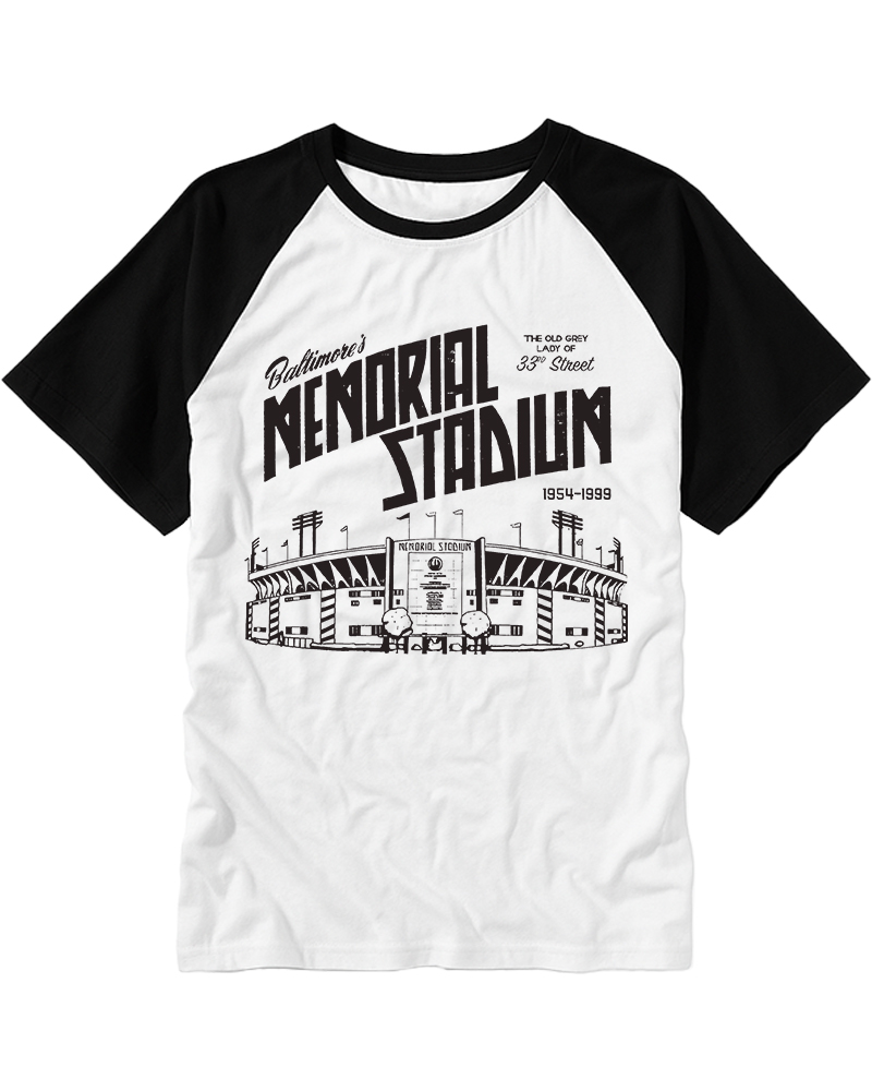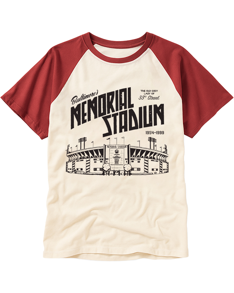 TheRetroTee Memorial Stadium Raglan Baseball T-Shirt