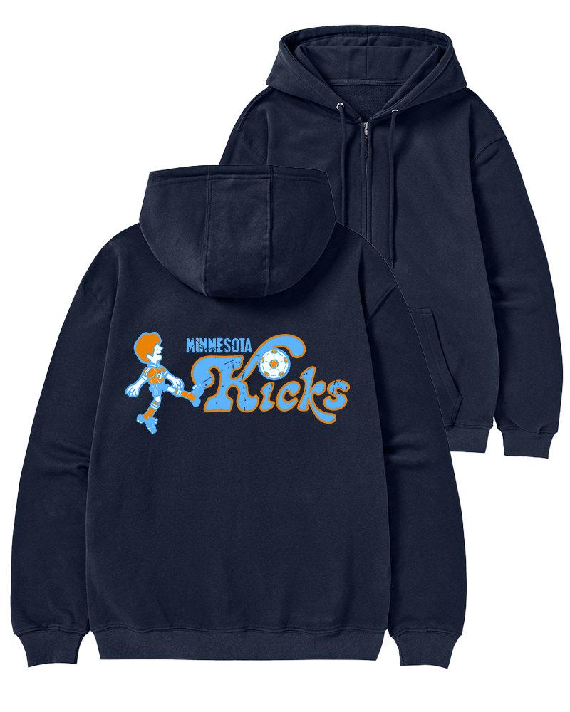 TheRetroTee Minnesota Kicks Soccer Zip-Up Hoodie