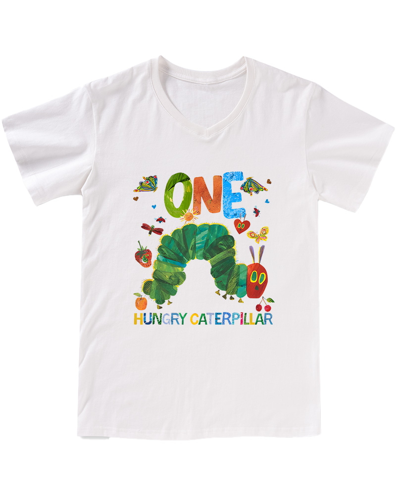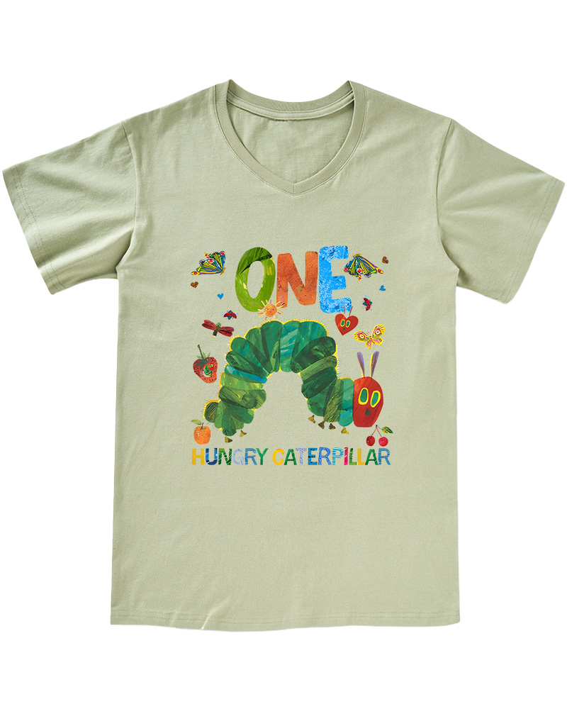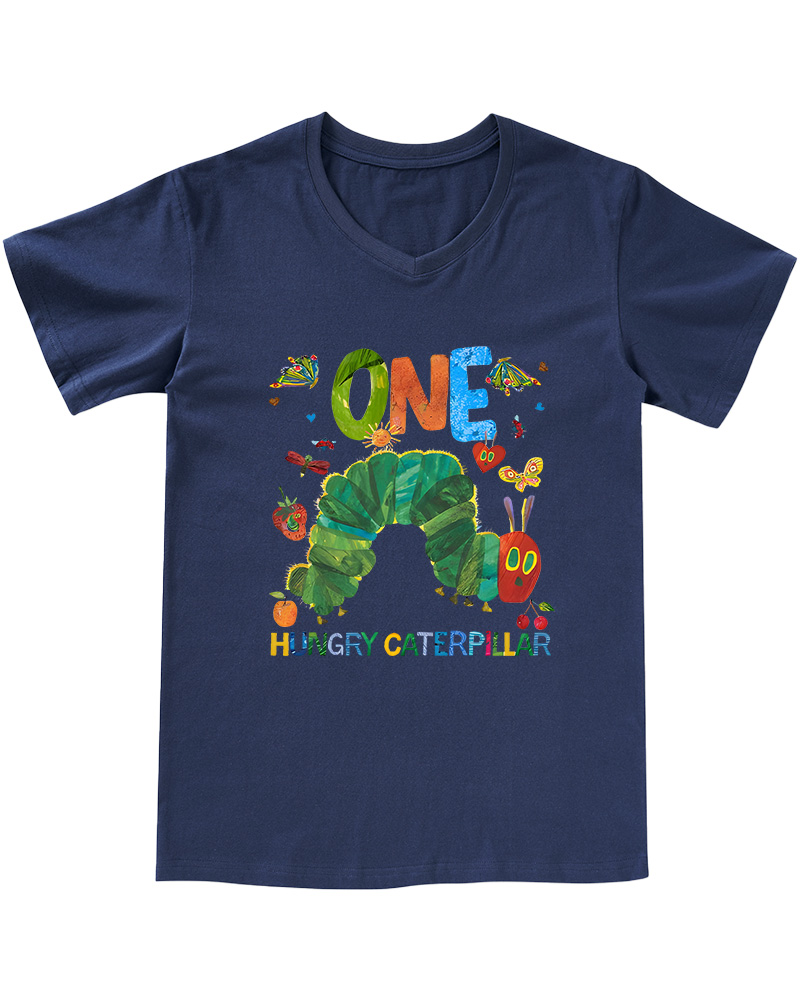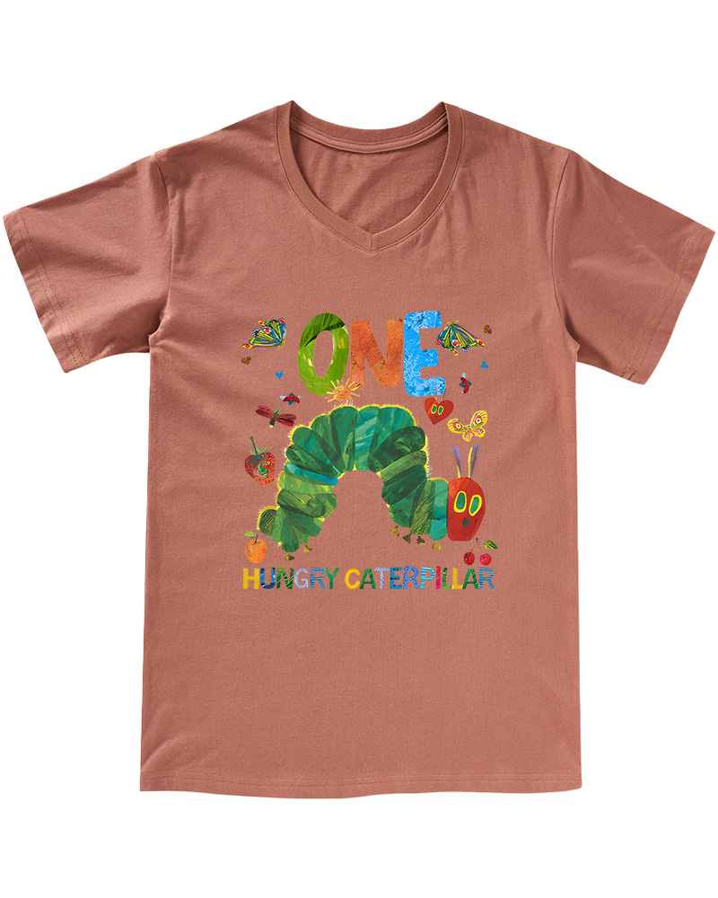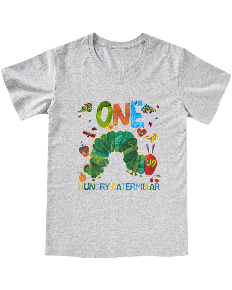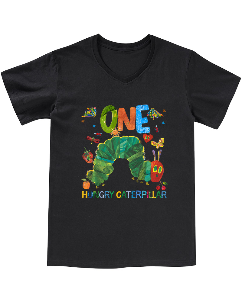 TheRetroTee One Hungry Caterpillar Birthday V-neck T-Shirt