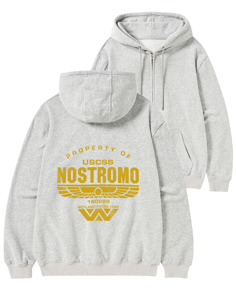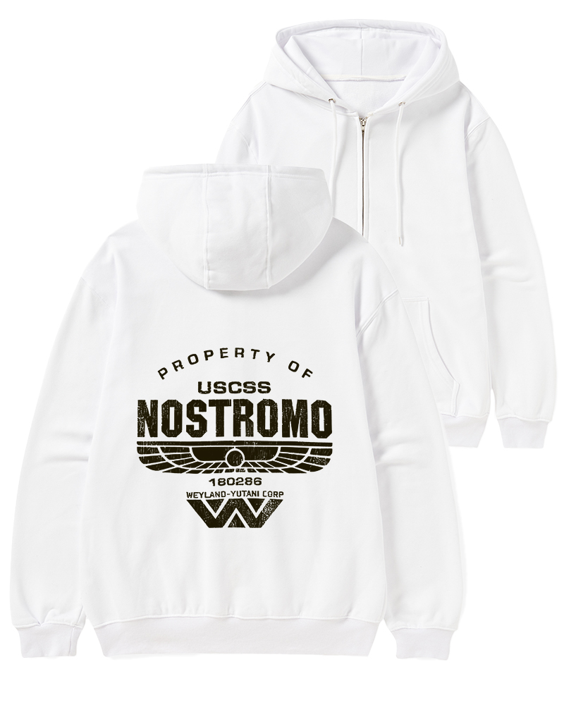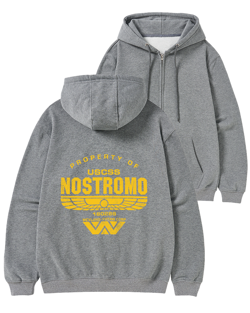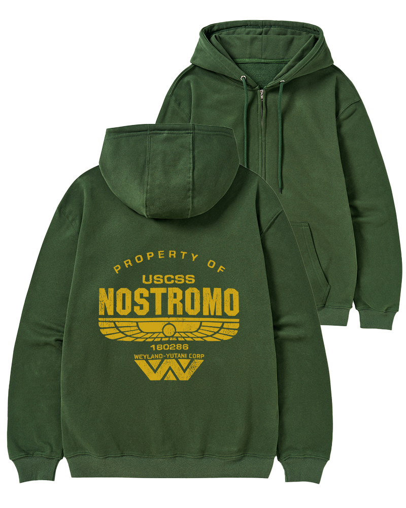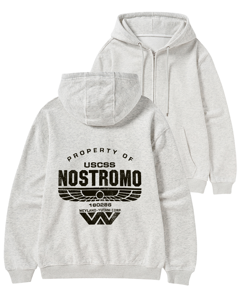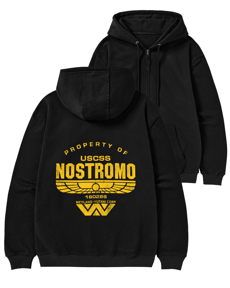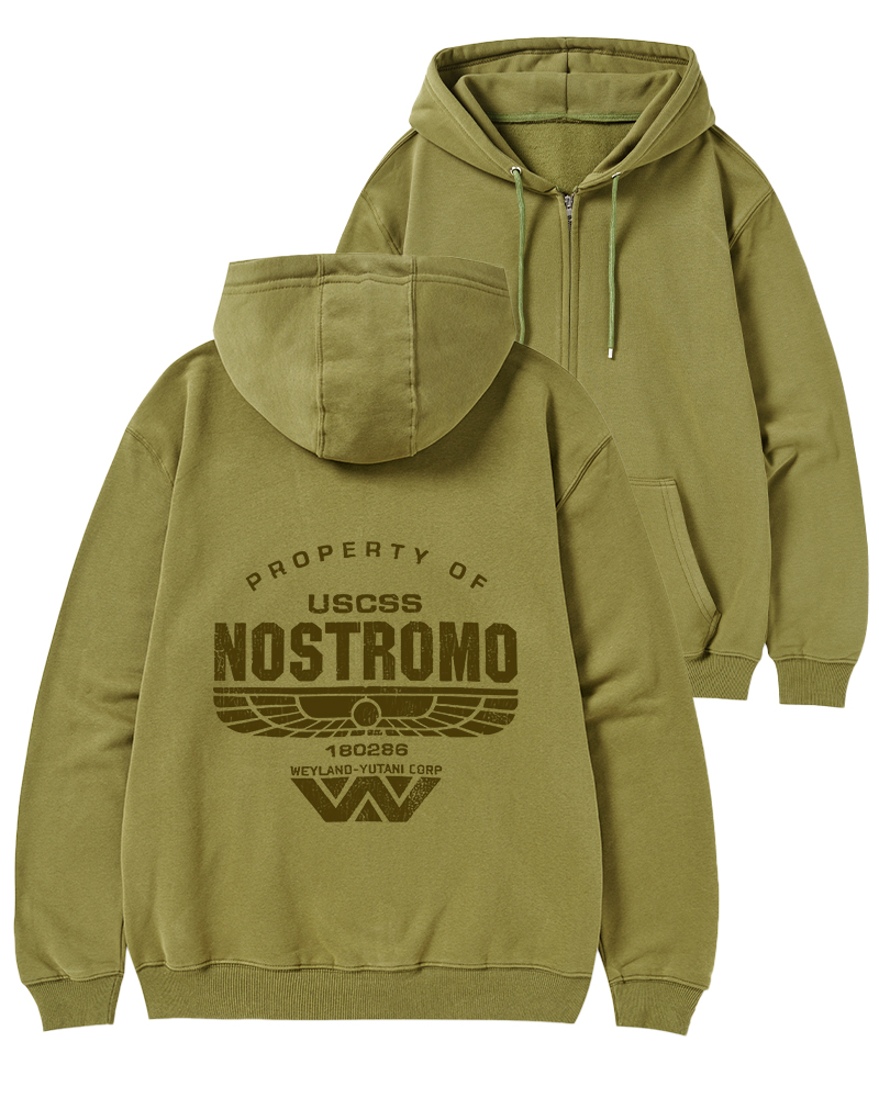 TheRetroTee Property of USCSS Nostromo Dks Worn Classic Zip-Up Hoodie