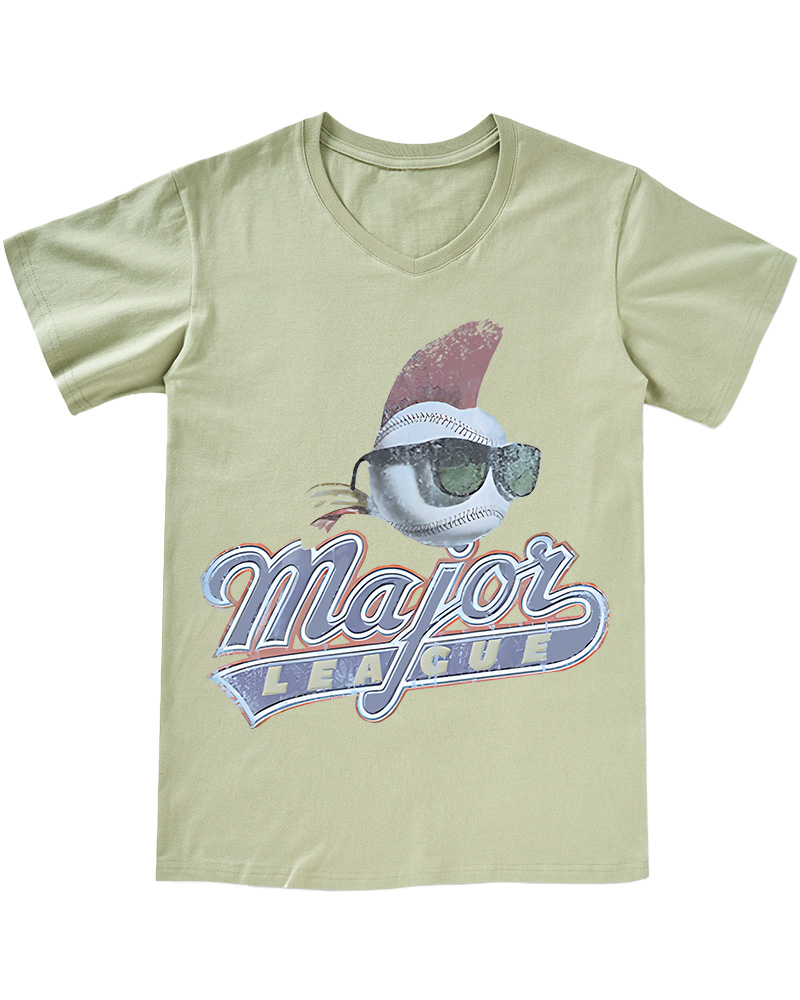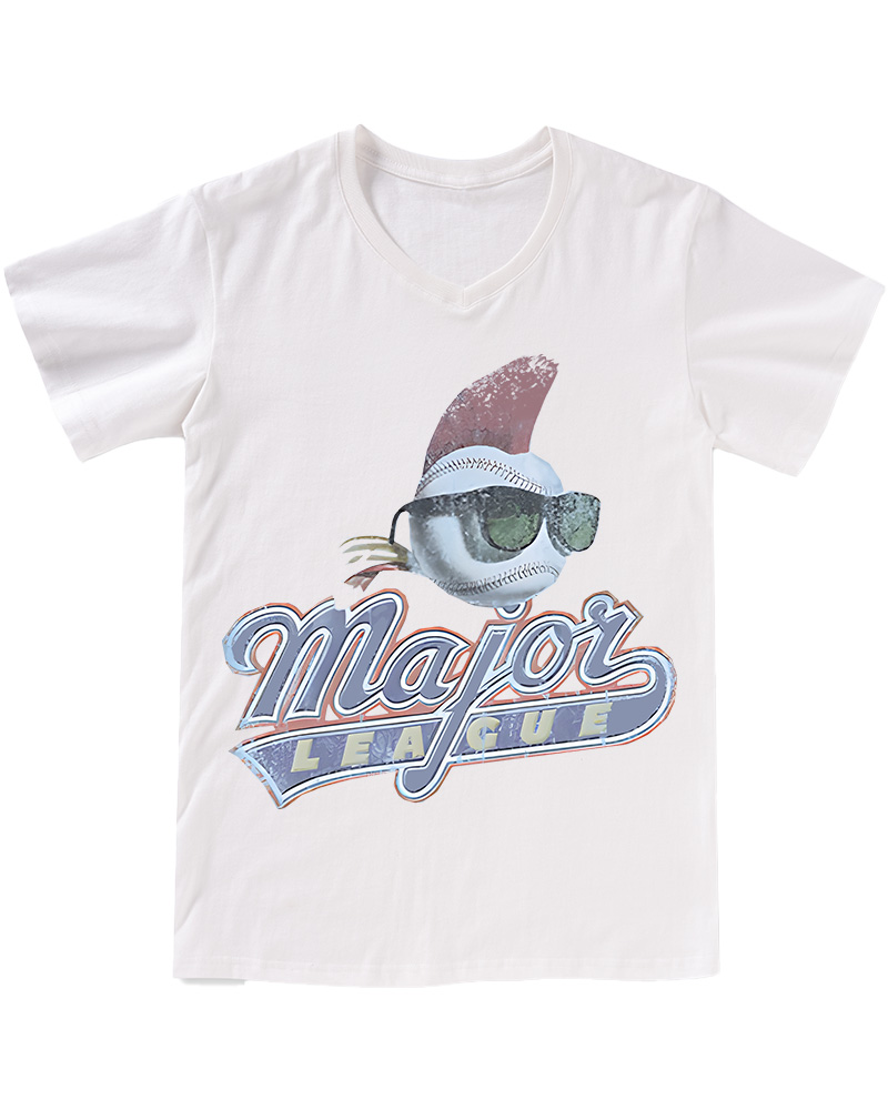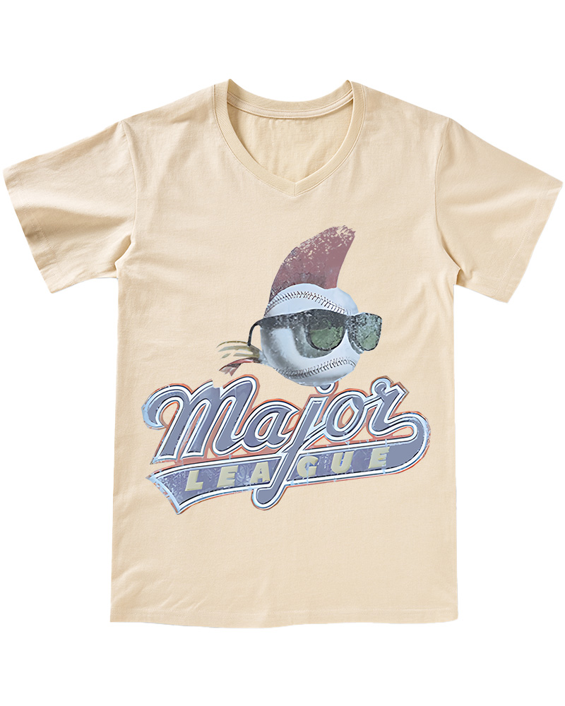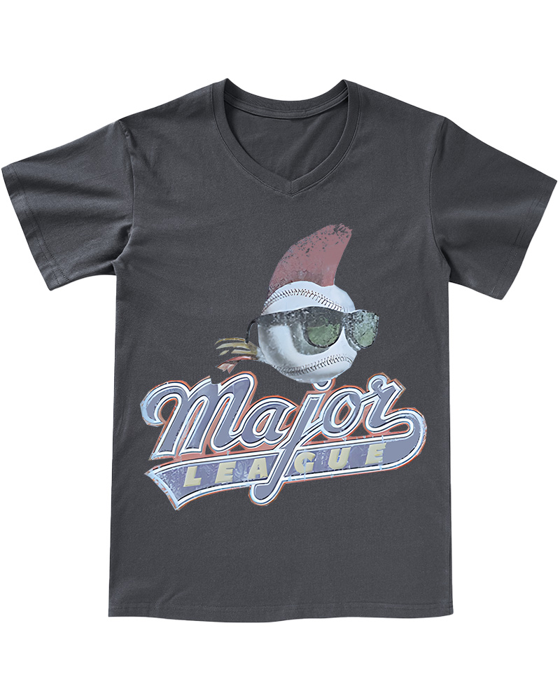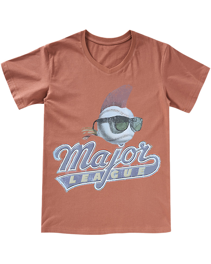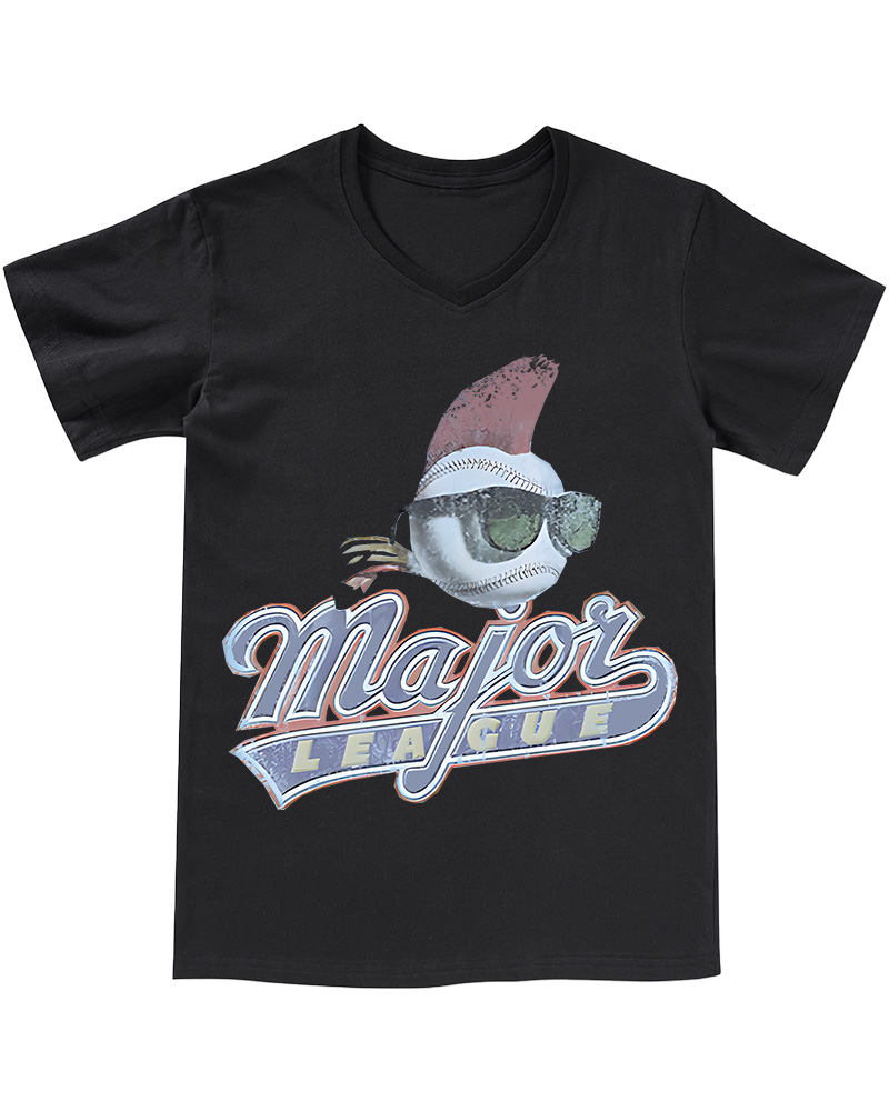 TheRetroTee Quirky Fish & Baseball V-Neck Shirt