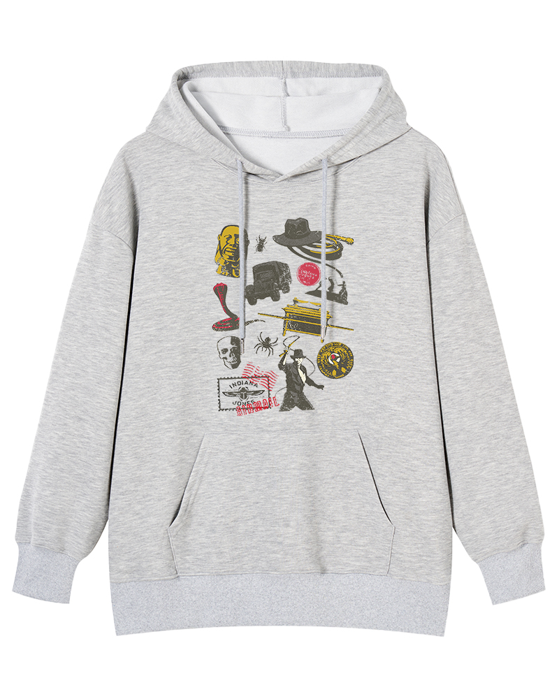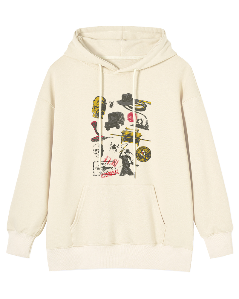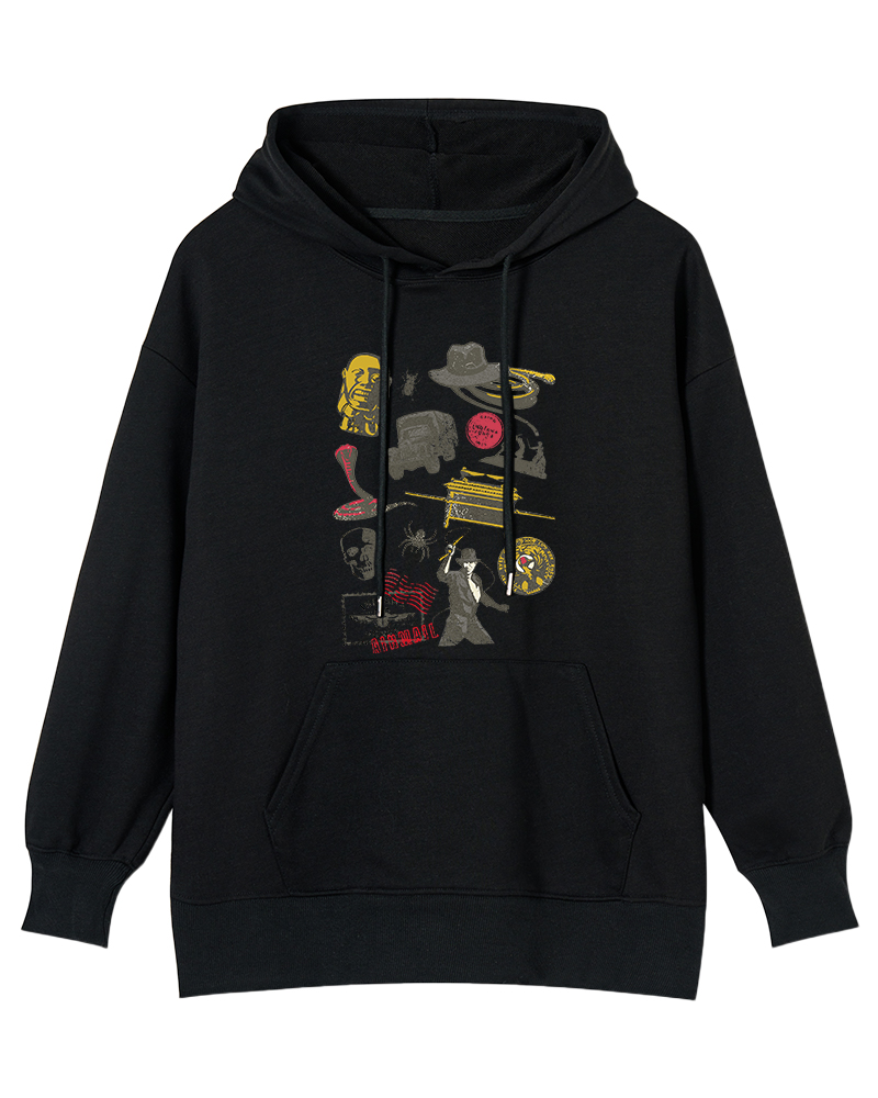 TheRetroTee Raiders of the Lost Ark Icons Indiana Jones Cotton Hoodie