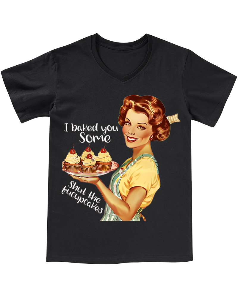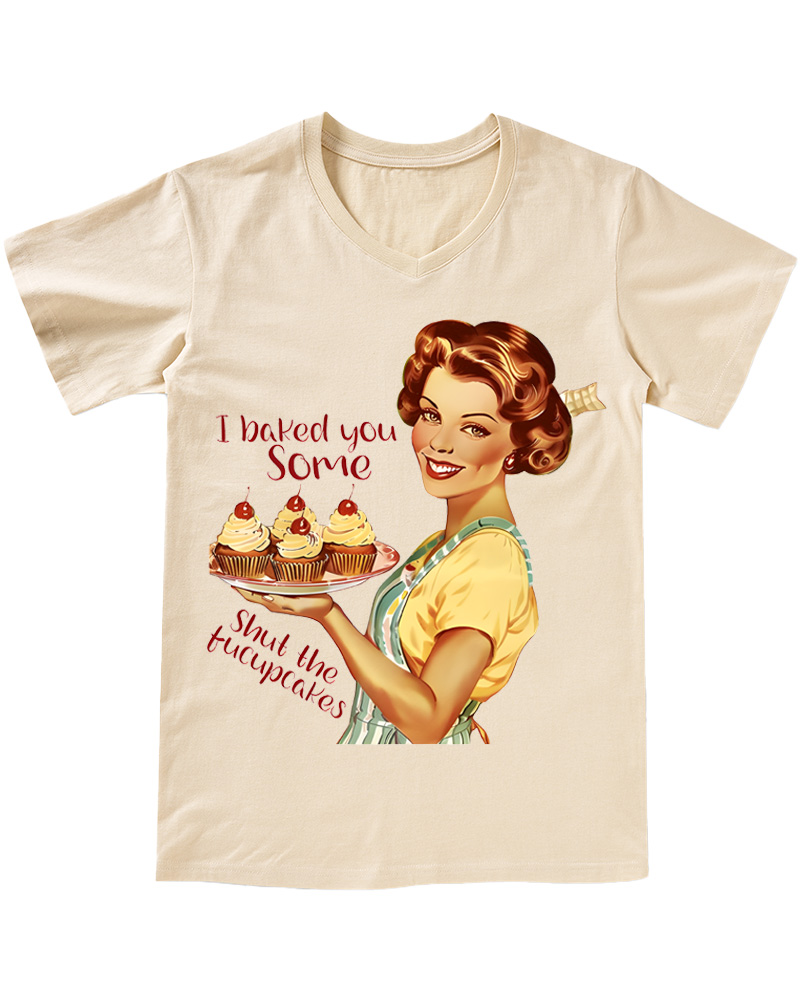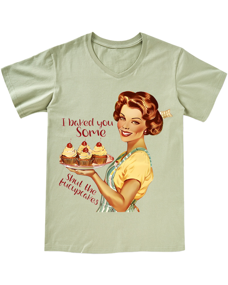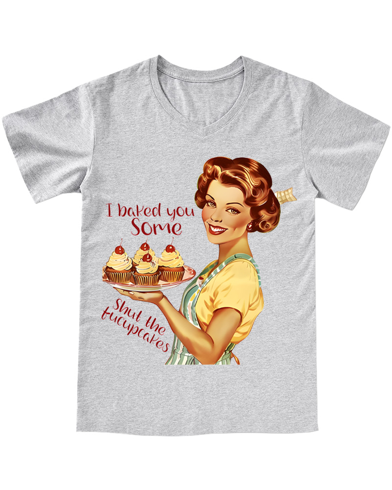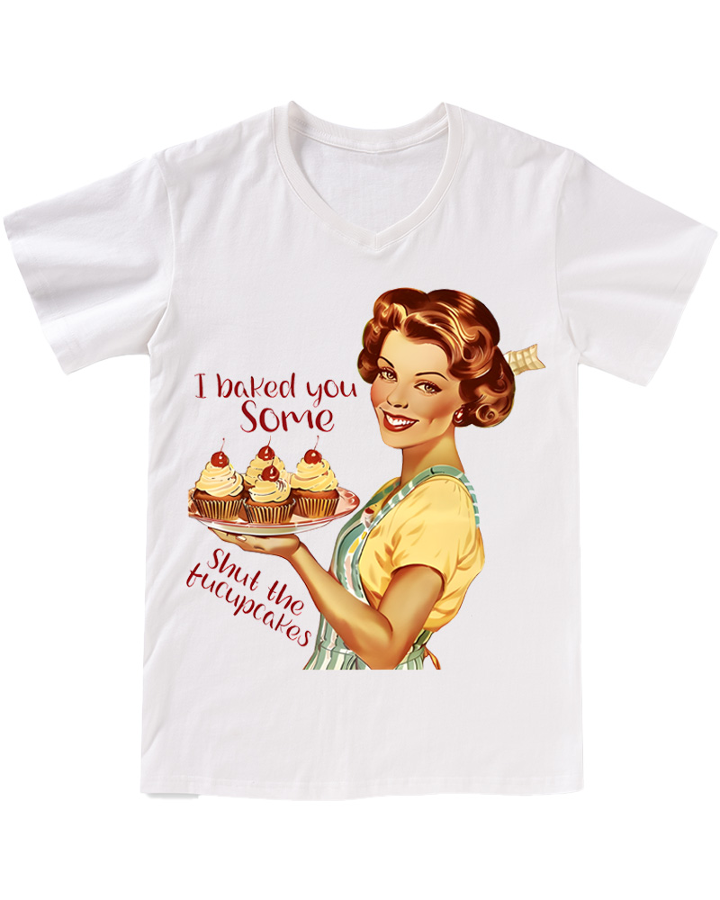 TheRetroTee Retro Sarcastic Housewife Graphic Pin-up V-neck T-Shirt