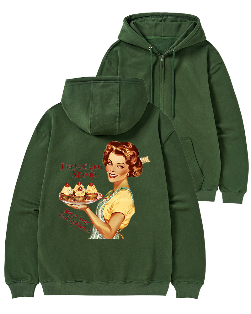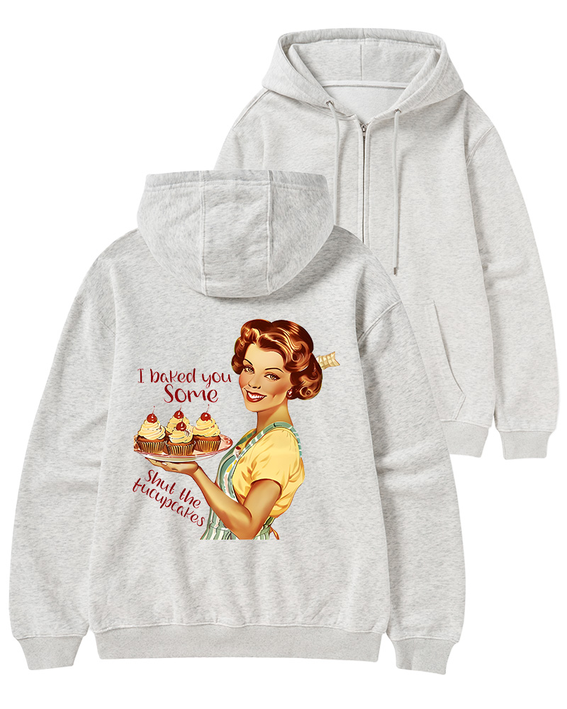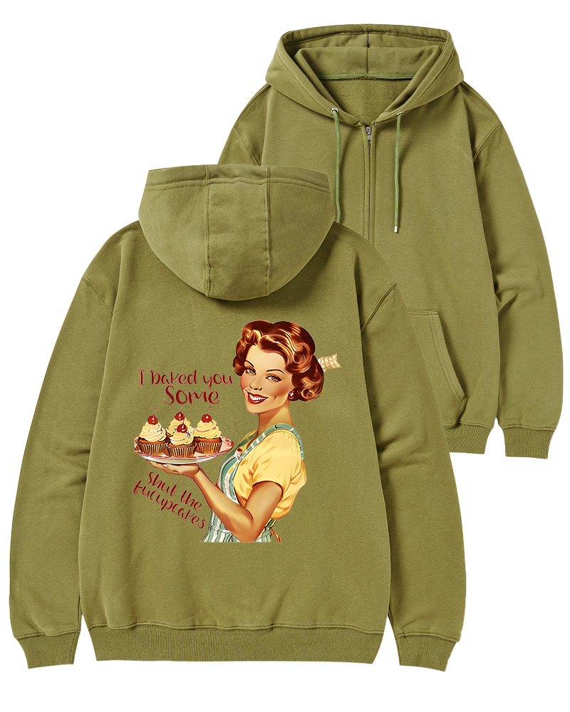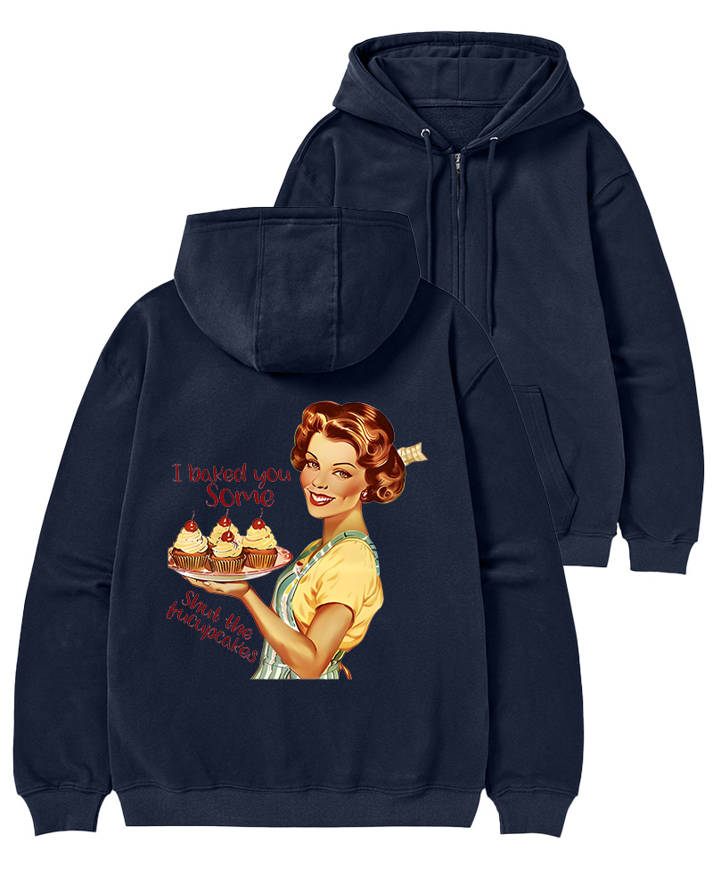 TheRetroTee Retro Sarcastic Housewife Graphic Pin-up Zip-Up Hoodie