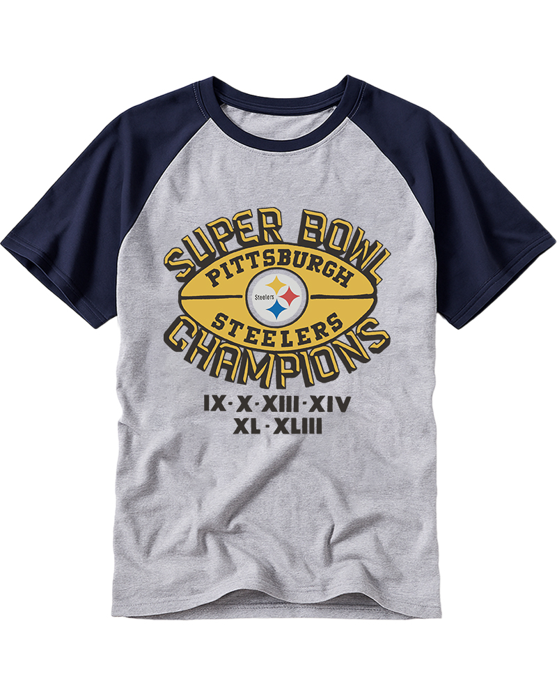 TheRetroTee Steelers 6 Time Super Bowl Champions Raglan Baseball T-Shirt