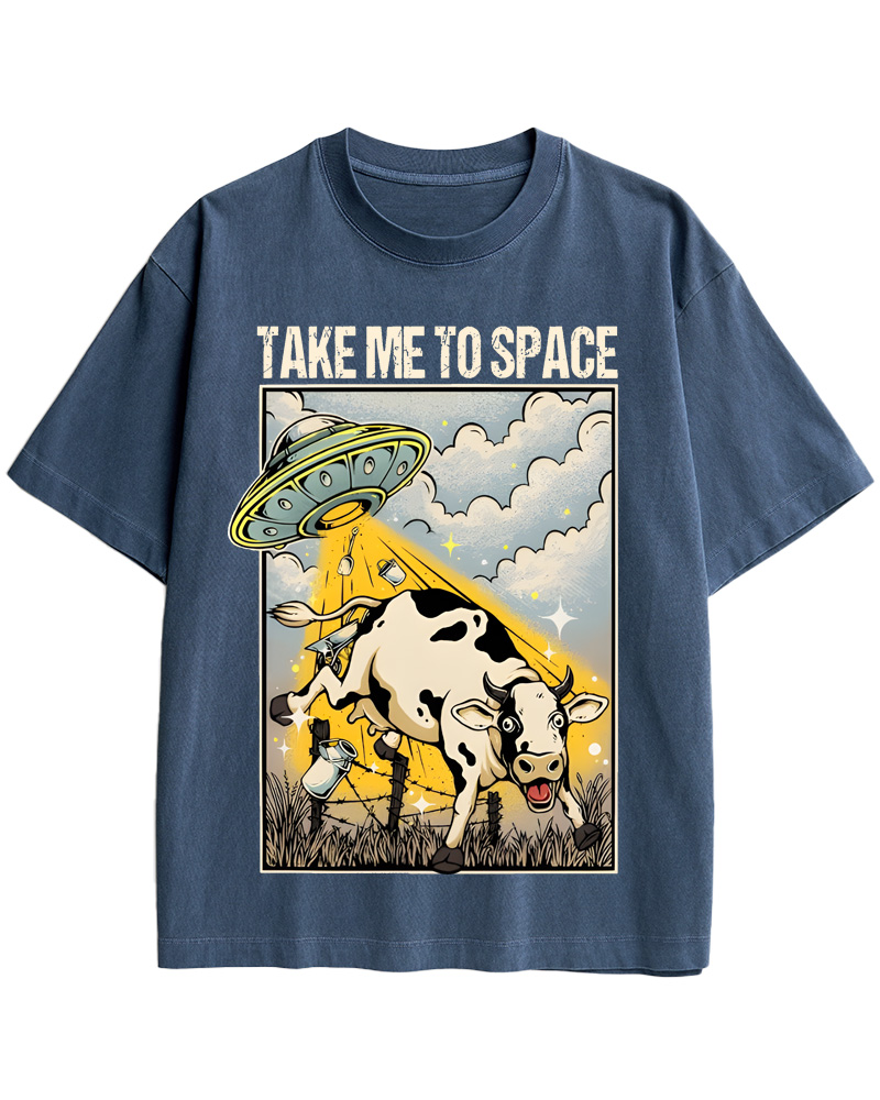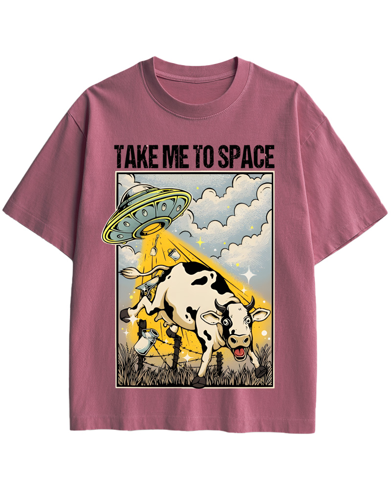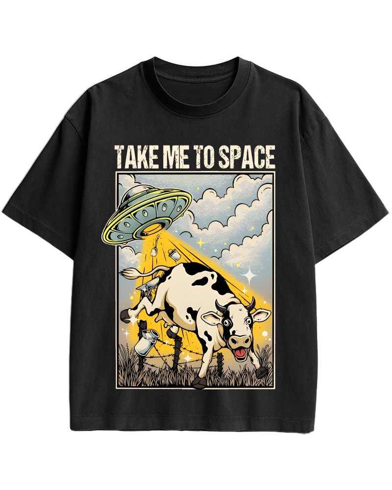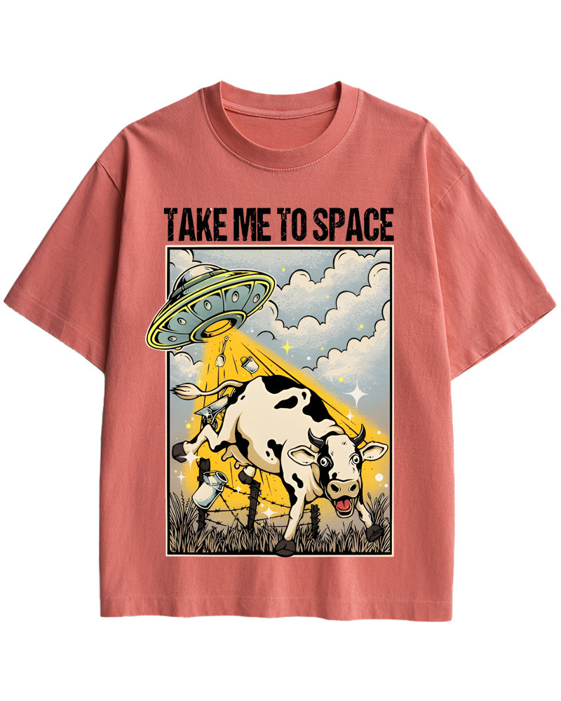 TheRetroTee Classic Whimsical Space-Themed Pin-up Cotton T-Shirt