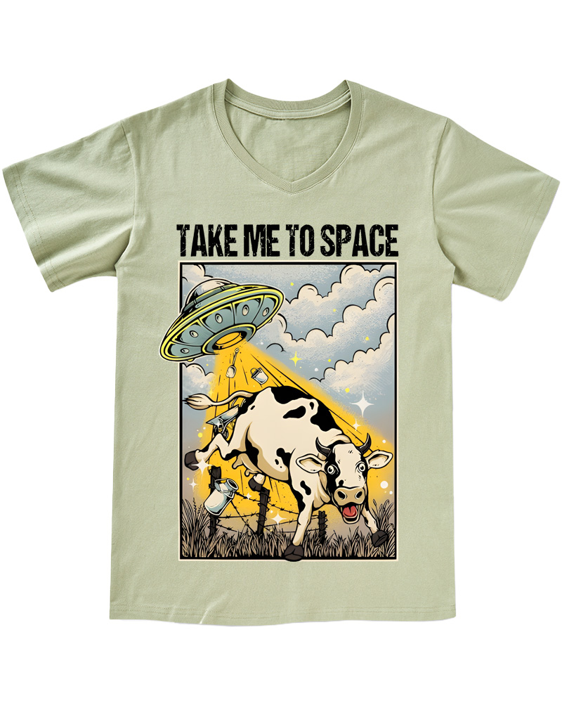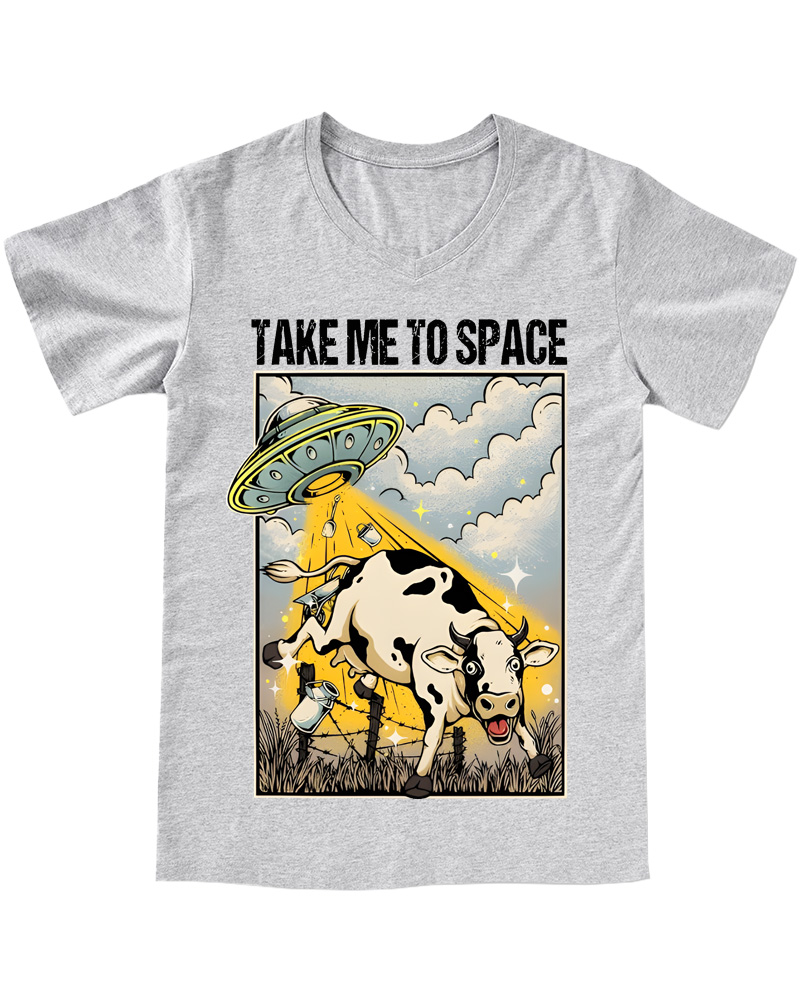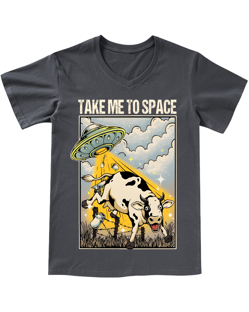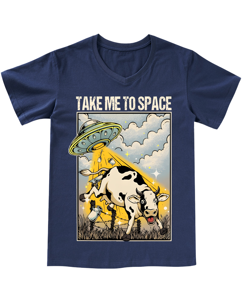 TheRetroTee Classic Whimsical Space-Themed Pin-up V-neck T-Shirt