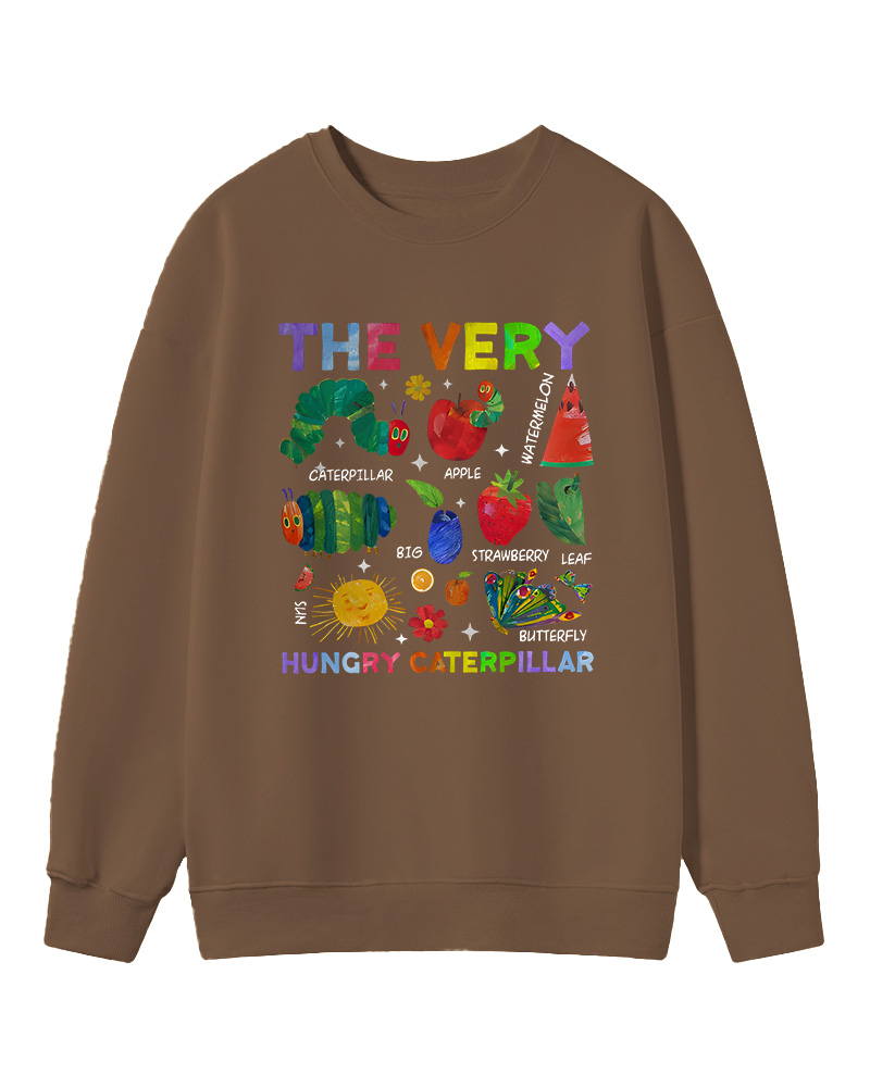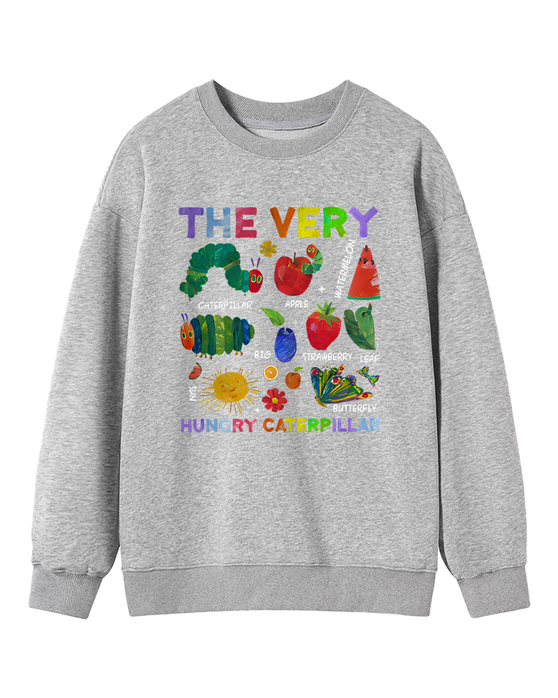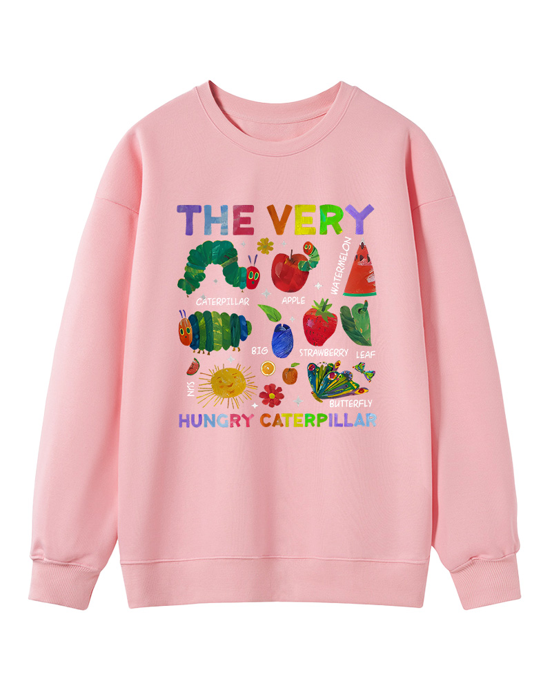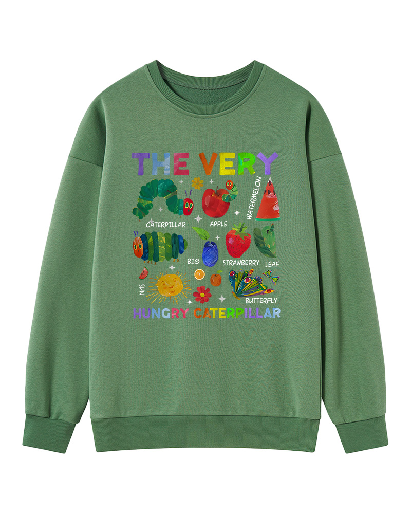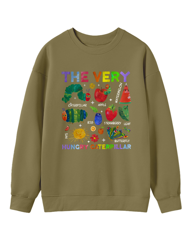 TheRetroTee Retro Playful Caterpillar and Fruits Children’s book Sweatshirt