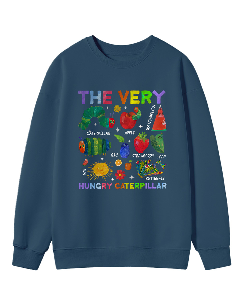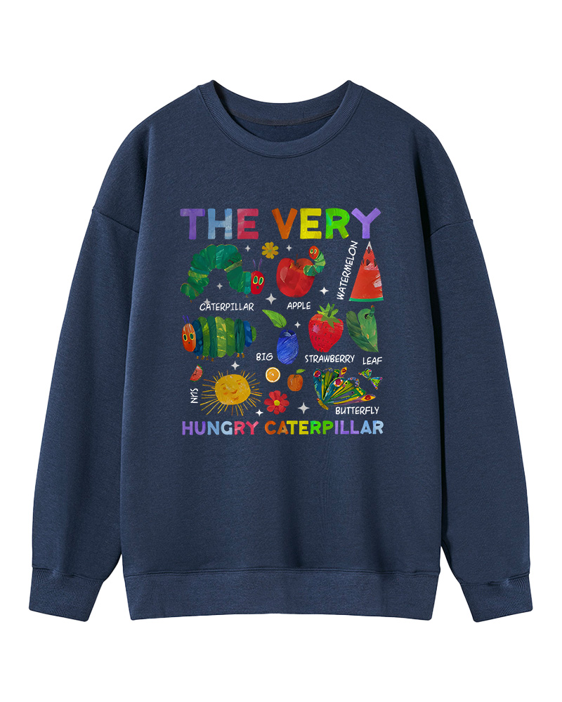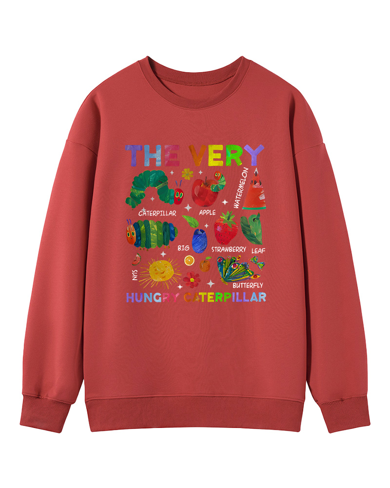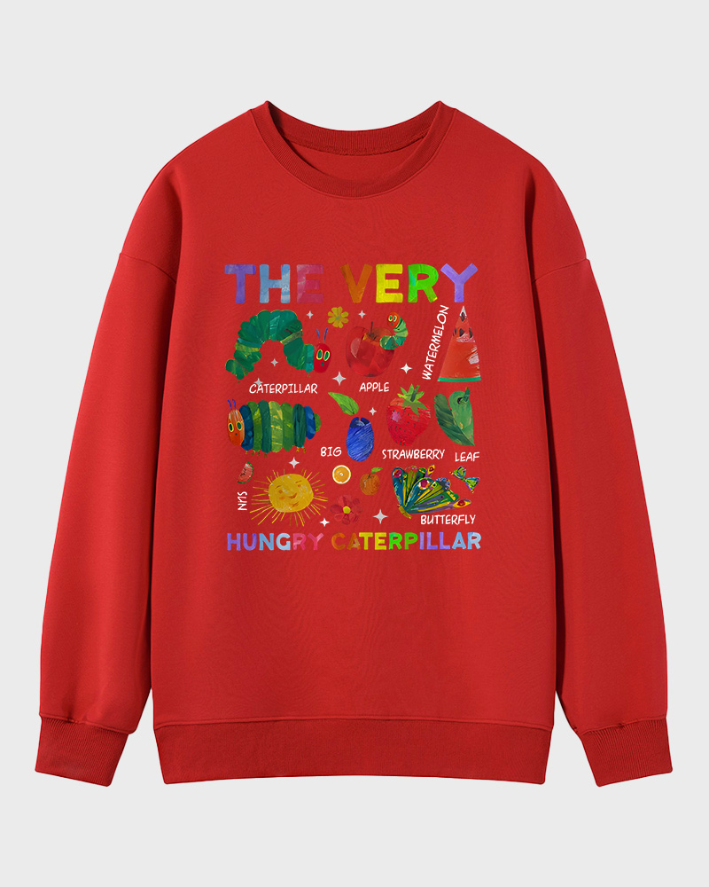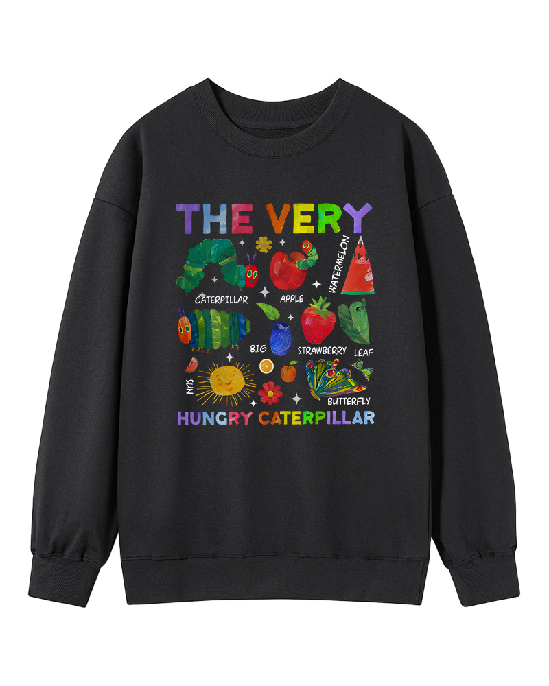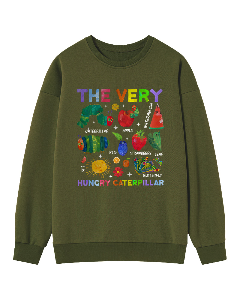 TheRetroTee Retro Playful Caterpillar and Fruits Children’s book Sweatshirt