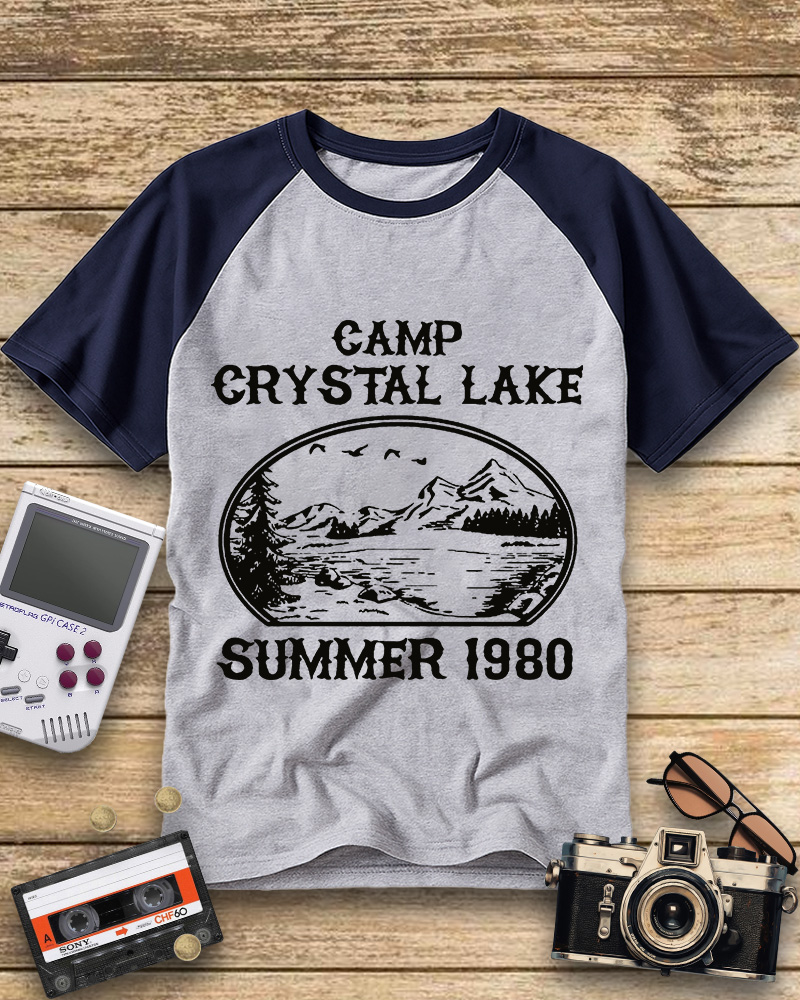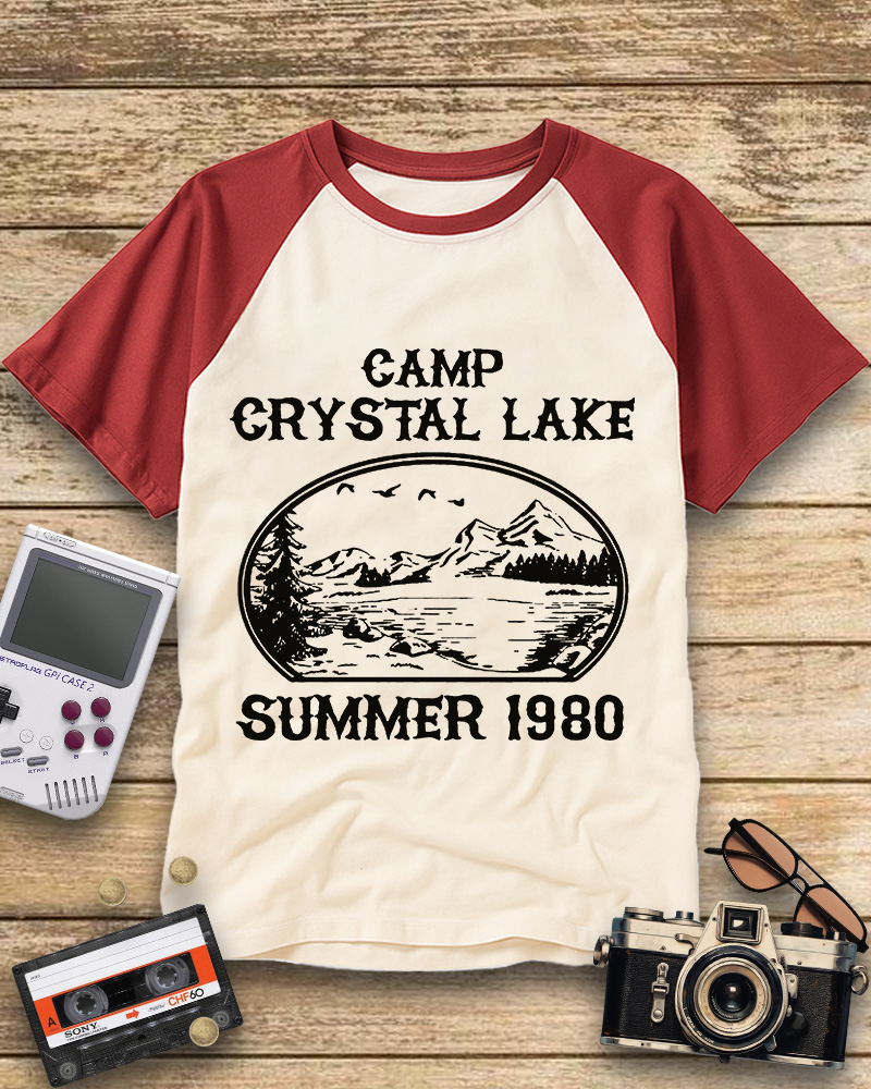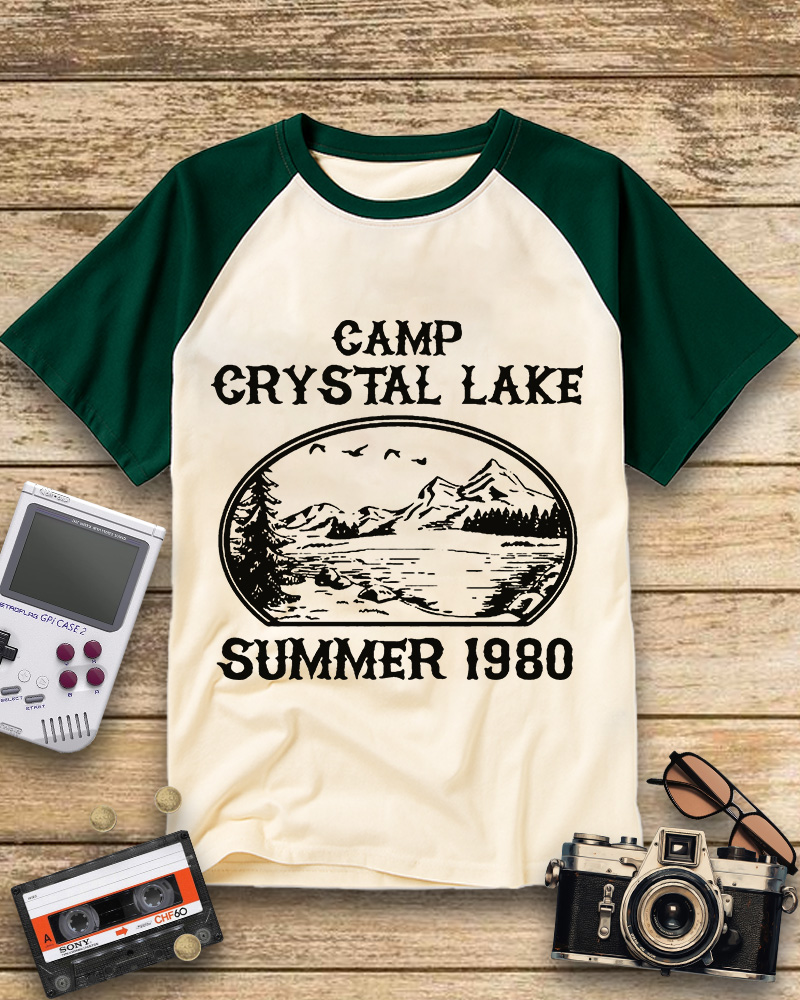 TheRetroTee Camp Crystal Lake Raglan Baseball T-Shirt