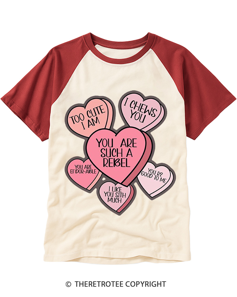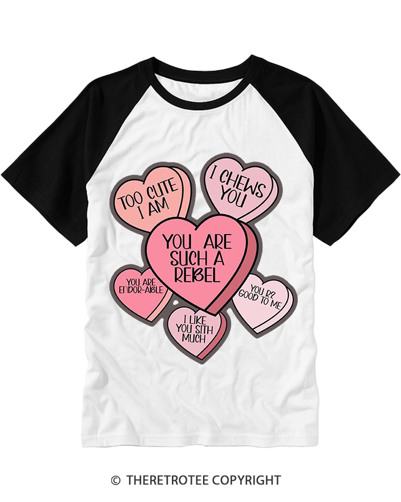 TheRetroTee Candy Hearts 1980s Raglan Baseball T-Shirt