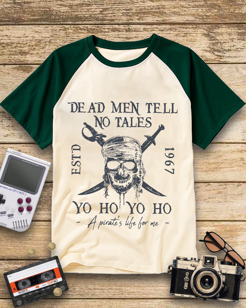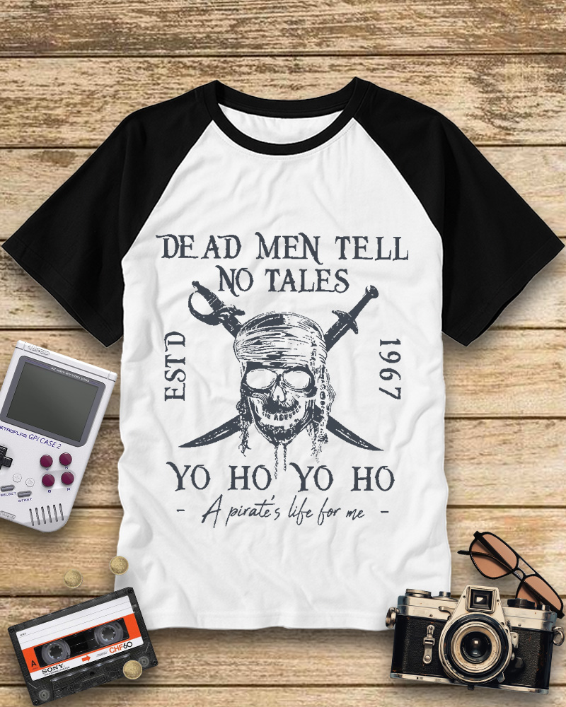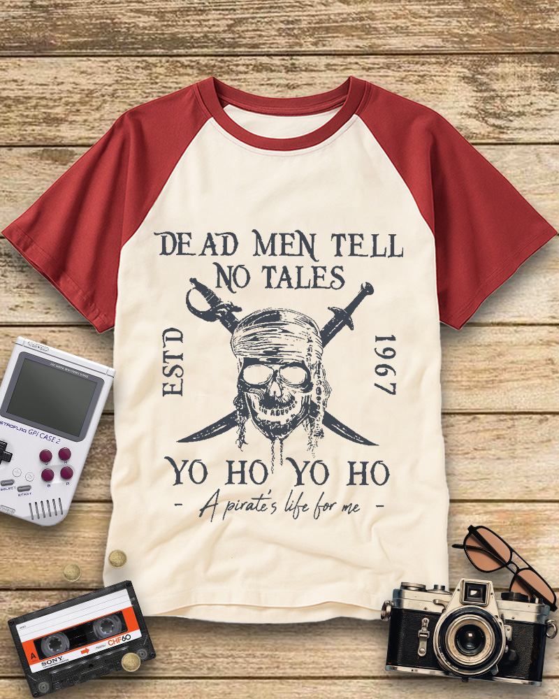 TheRetroTee Dead Men Tell No Tales Comfort Raglan Baseball T-Shirt