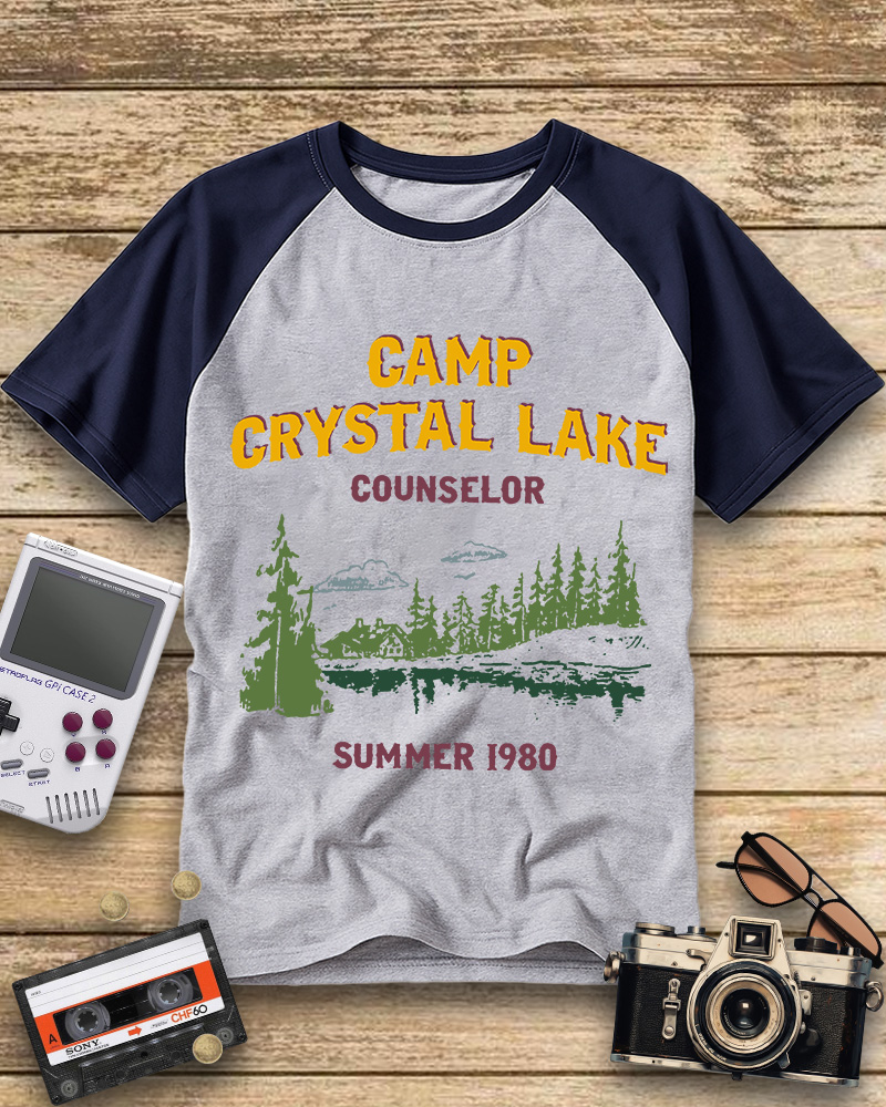 TheRetroTee Friday the 13th Jason Voorhees Halloween Horror Raglan Baseball T-Shirt