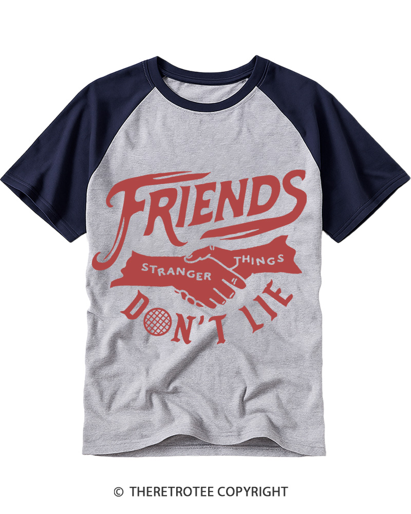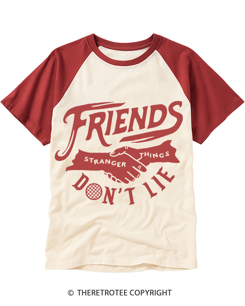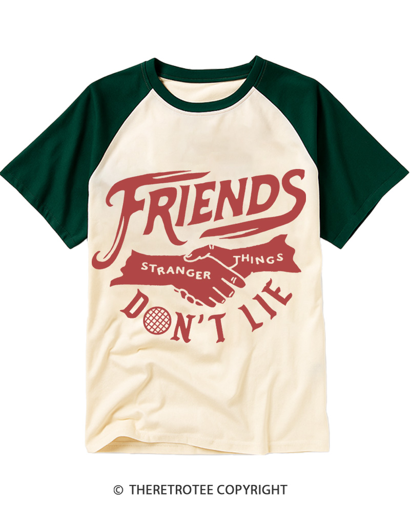 TheRetroTee Friends Don't Lie 1980s Raglan Baseball T-Shirt
