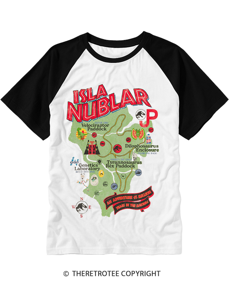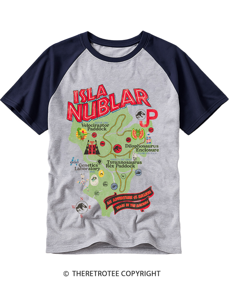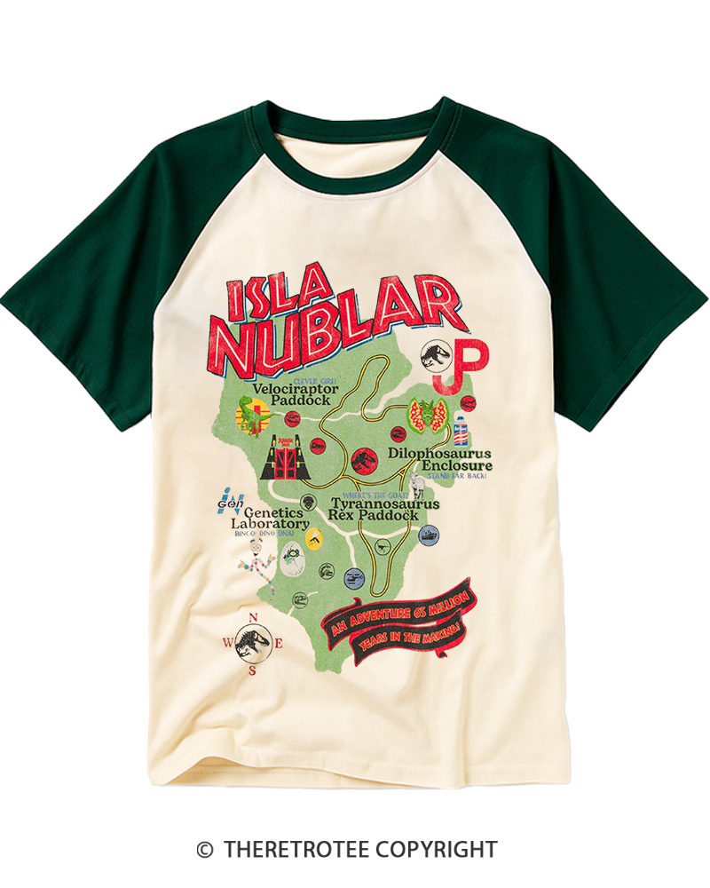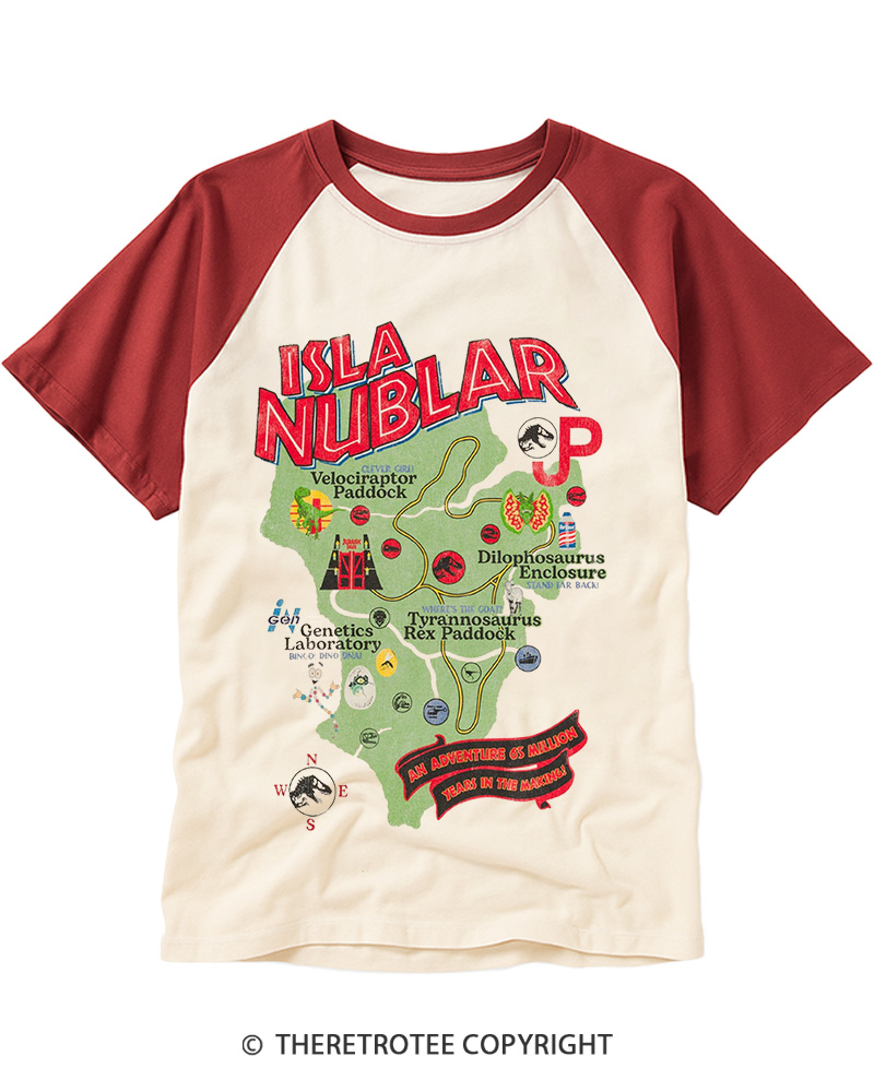 TheRetroTee Isla Nublar Map Natural 1990s Raglan Baseball T-Shirt