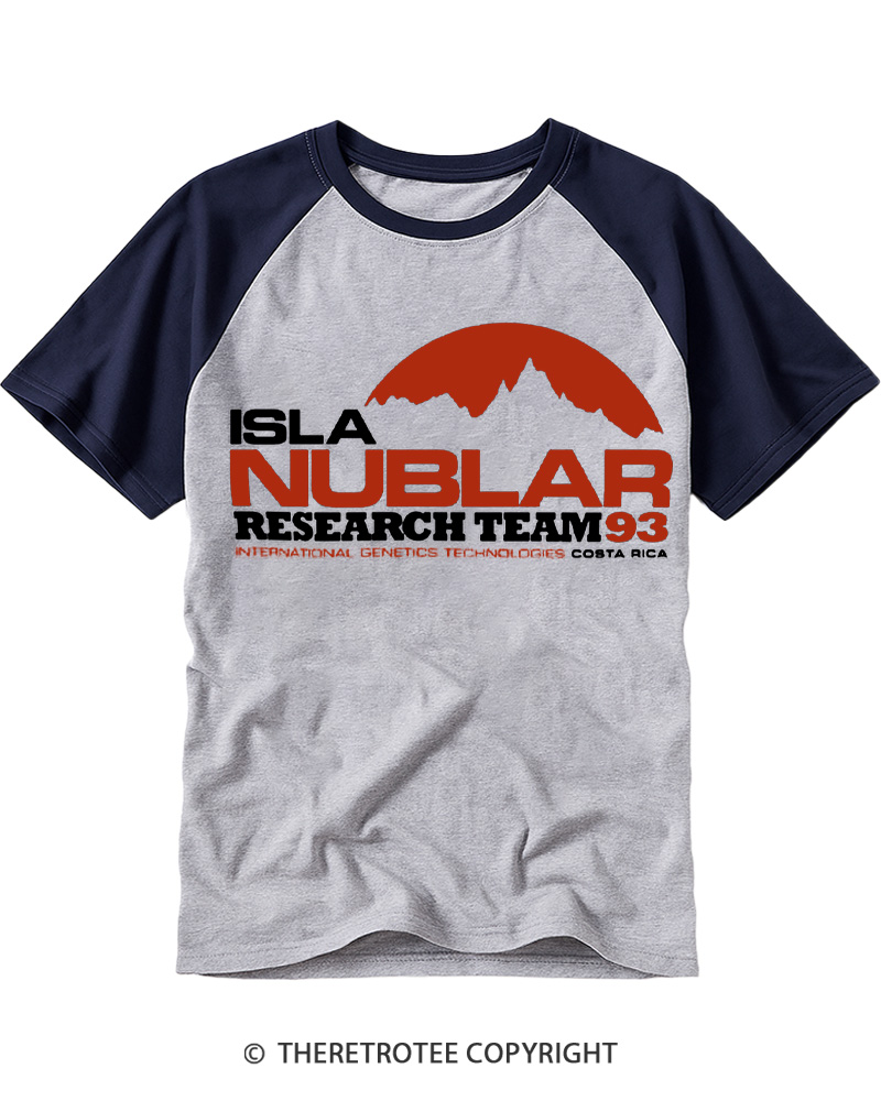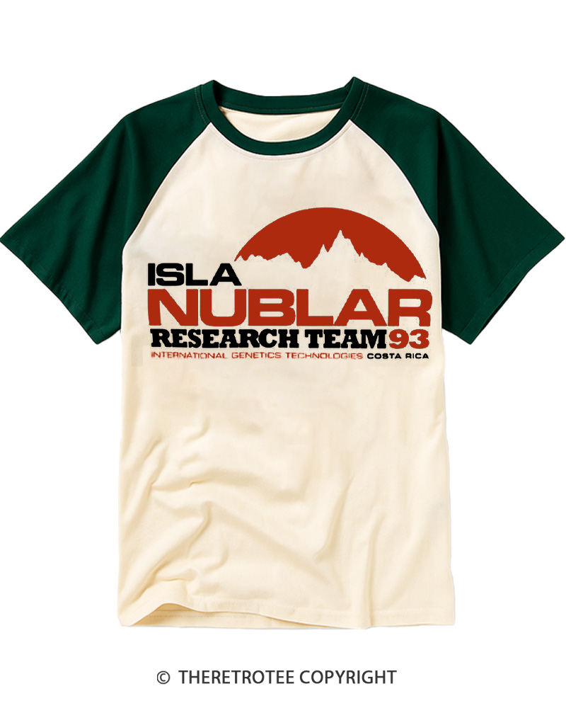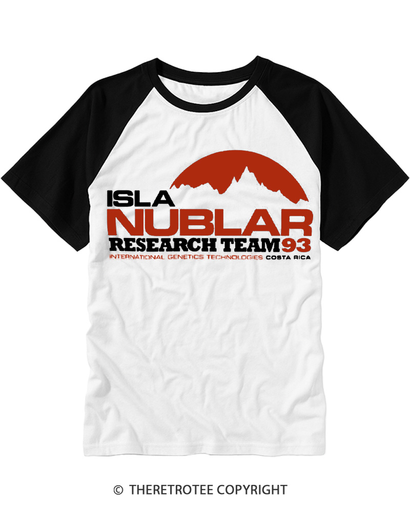 TheRetroTee ISLA Nublar Research Team 1993 Raglan Baseball T-Shirt