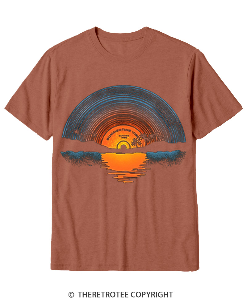 TheRetroTee Sunset vinyl Essential 1980s Cotton T-Shirt
