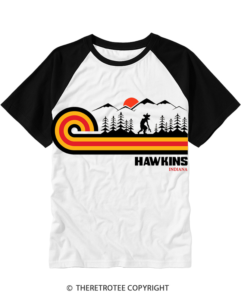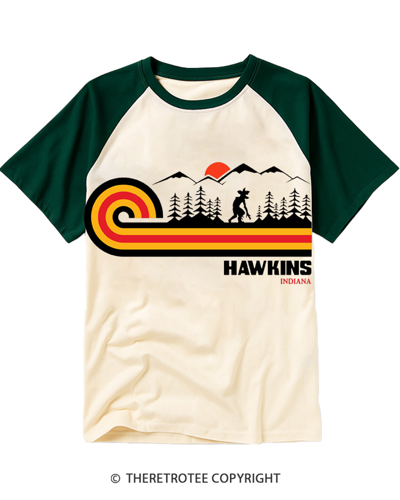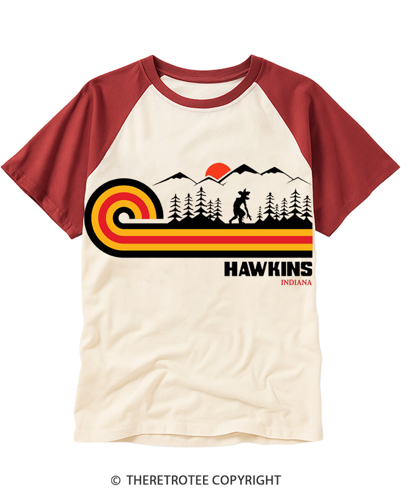 TheRetroTee Visit Hawkins Retro 70s Vibe Raglan Baseball T-Shirt