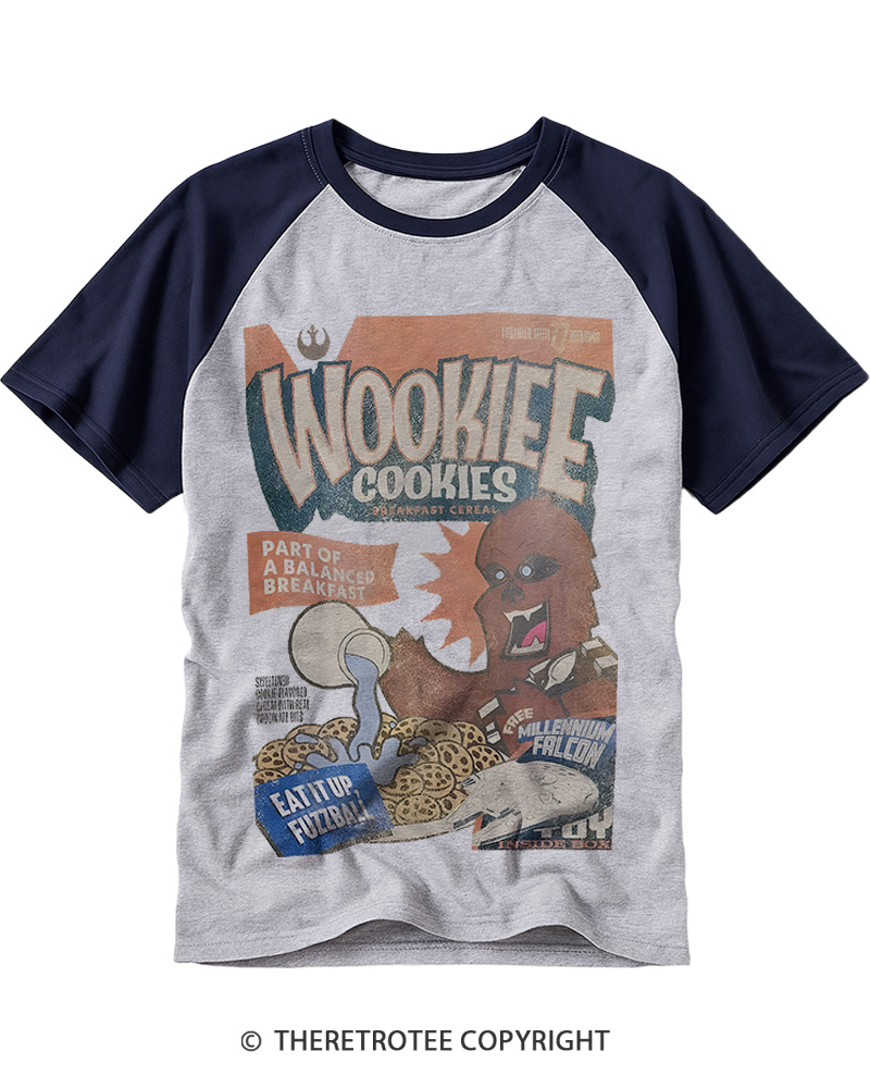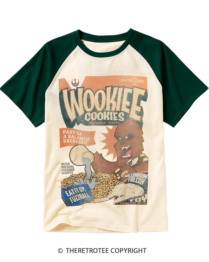TheRetroTee Wookie Cookies Cereal Zine 1980s Raglan Baseball T-Shirt