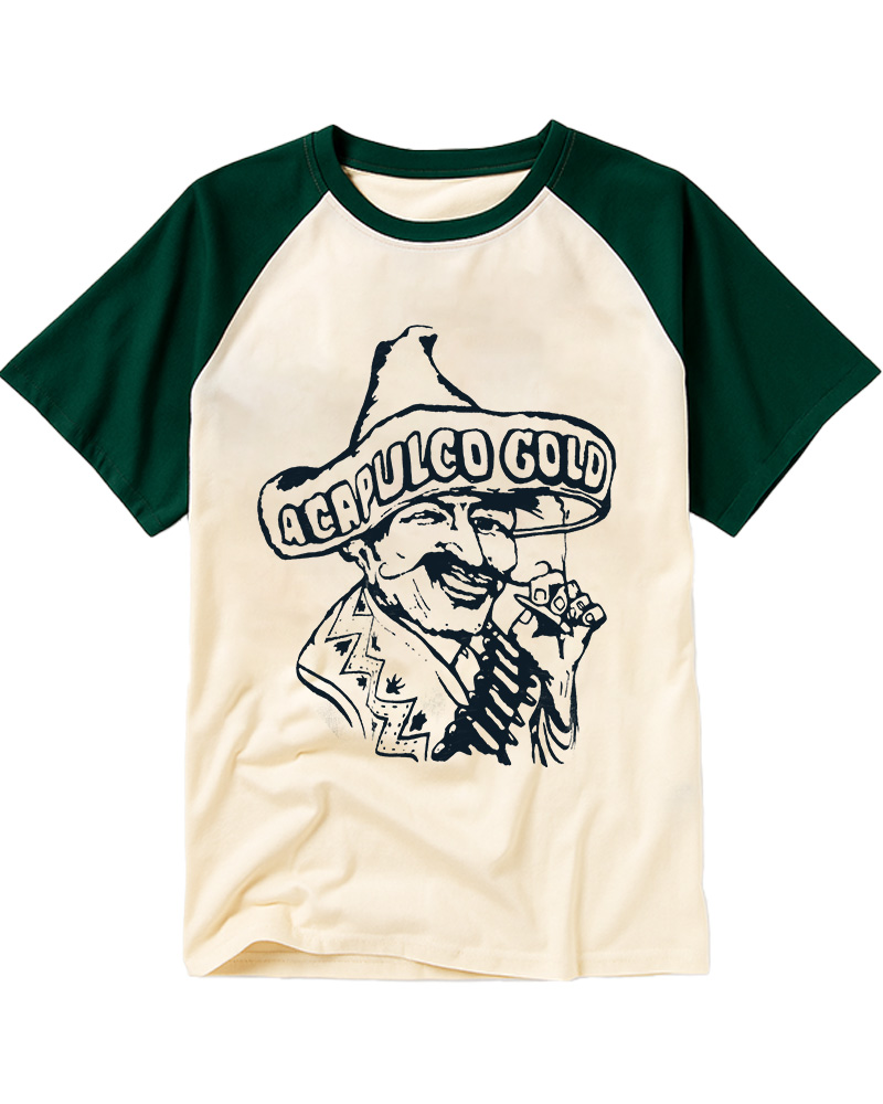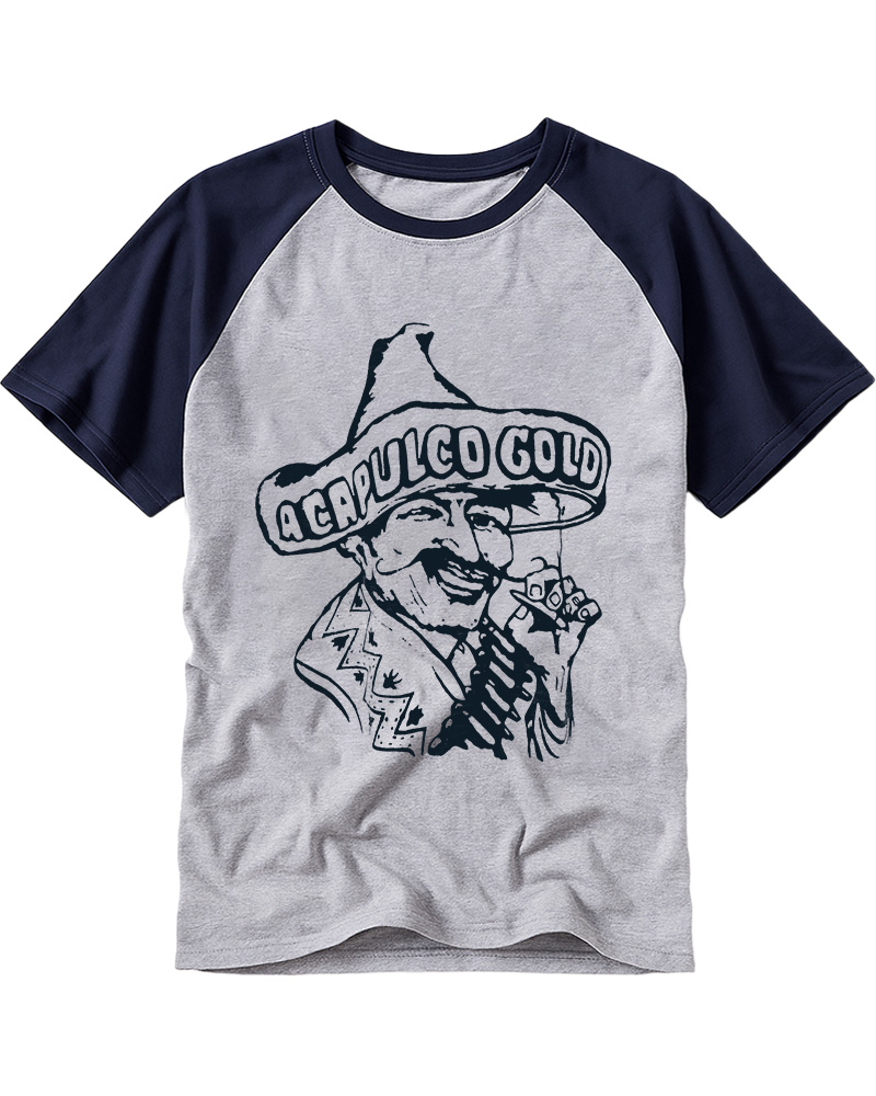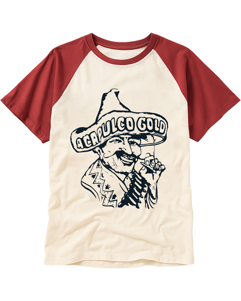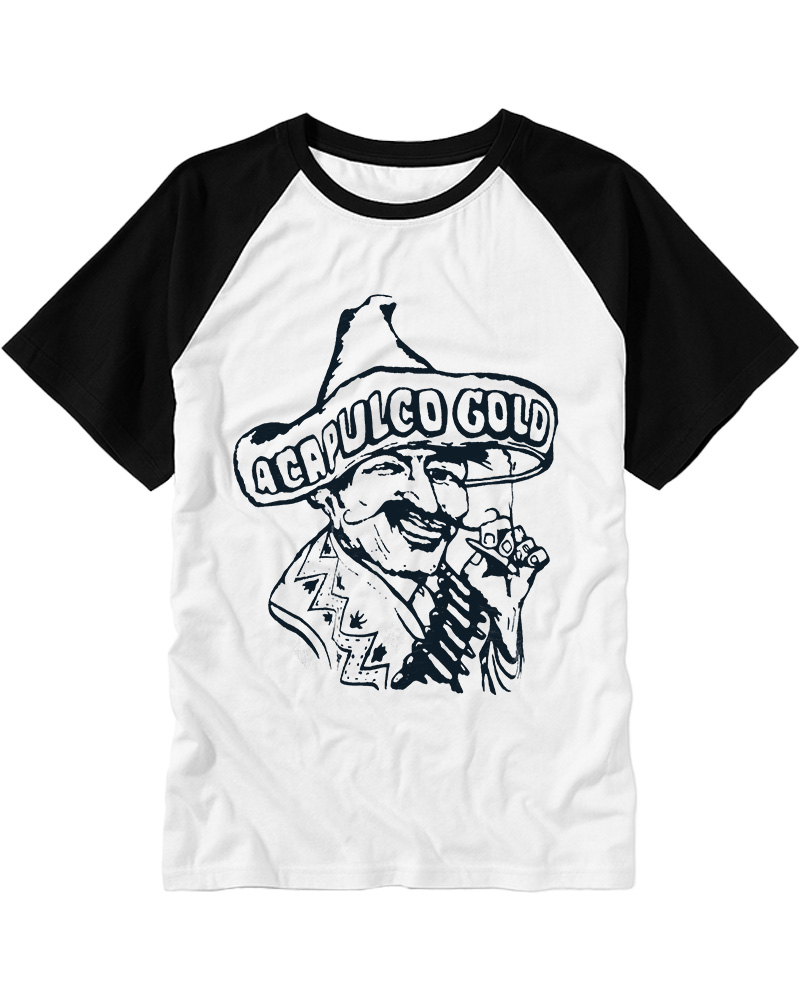 TheRetroTee Vintage Acapulco Gold Cannabis Marijuana Weed Hispanic Raglan Baseball T-Shirt