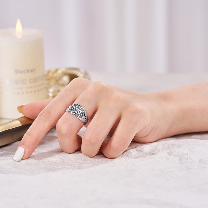 TheRetroTee Vintage Celestial Pentagram Signet Ring