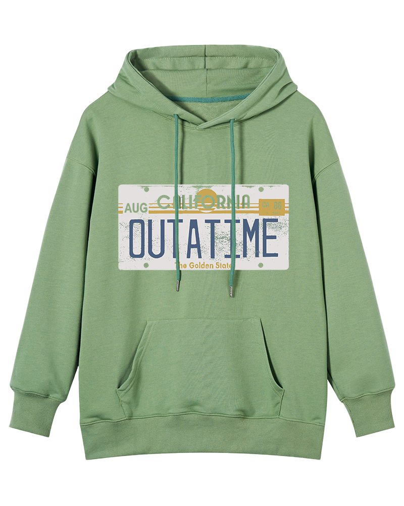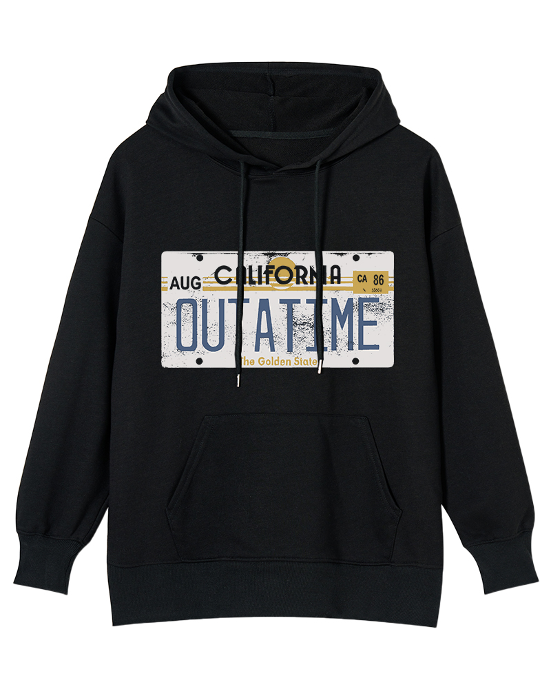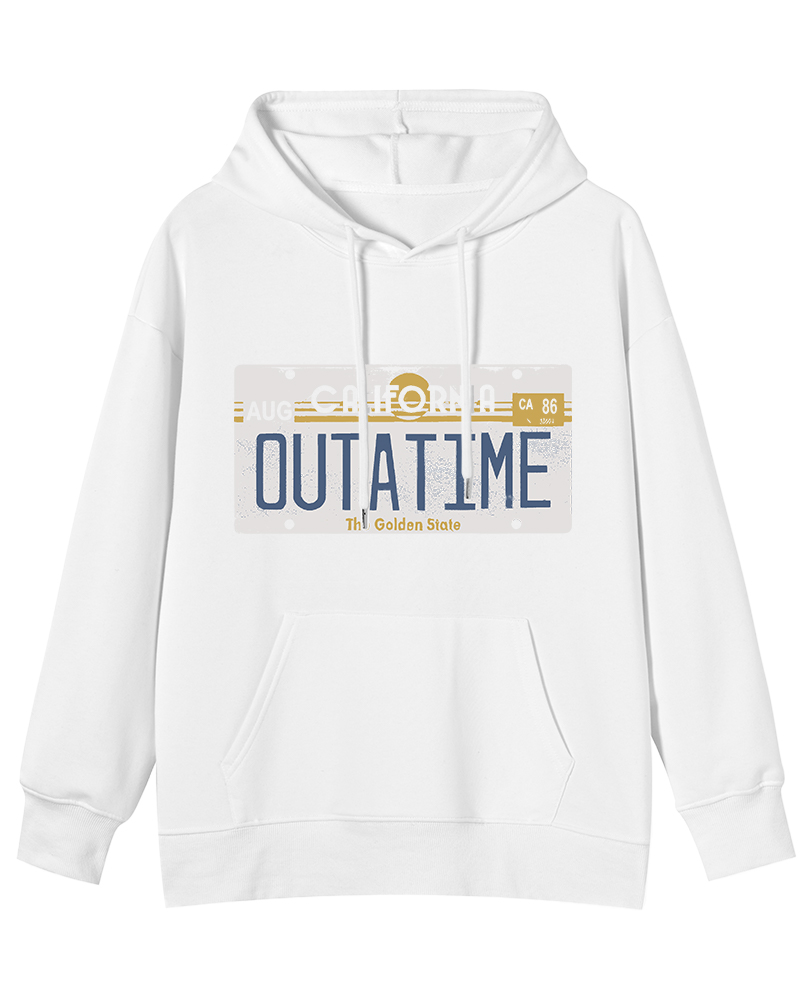 TheRetroTee Vintage Outatime License Plate Back To The Future Cotton Hoodie