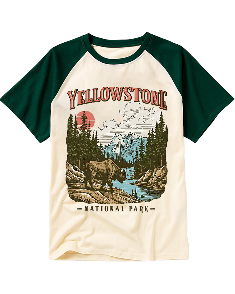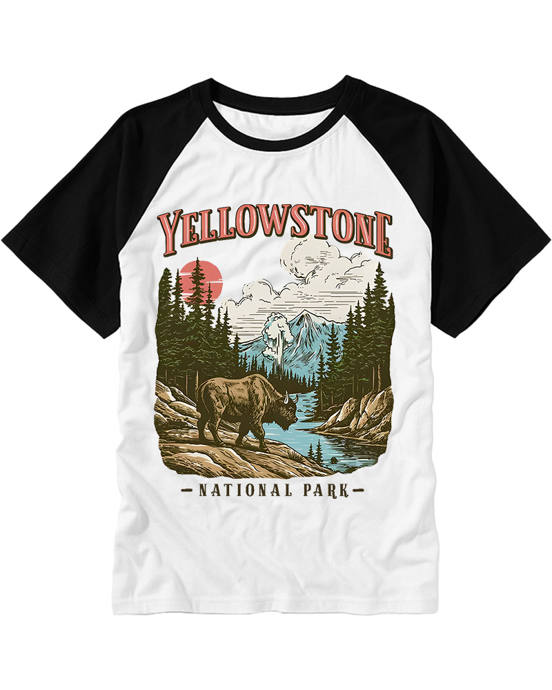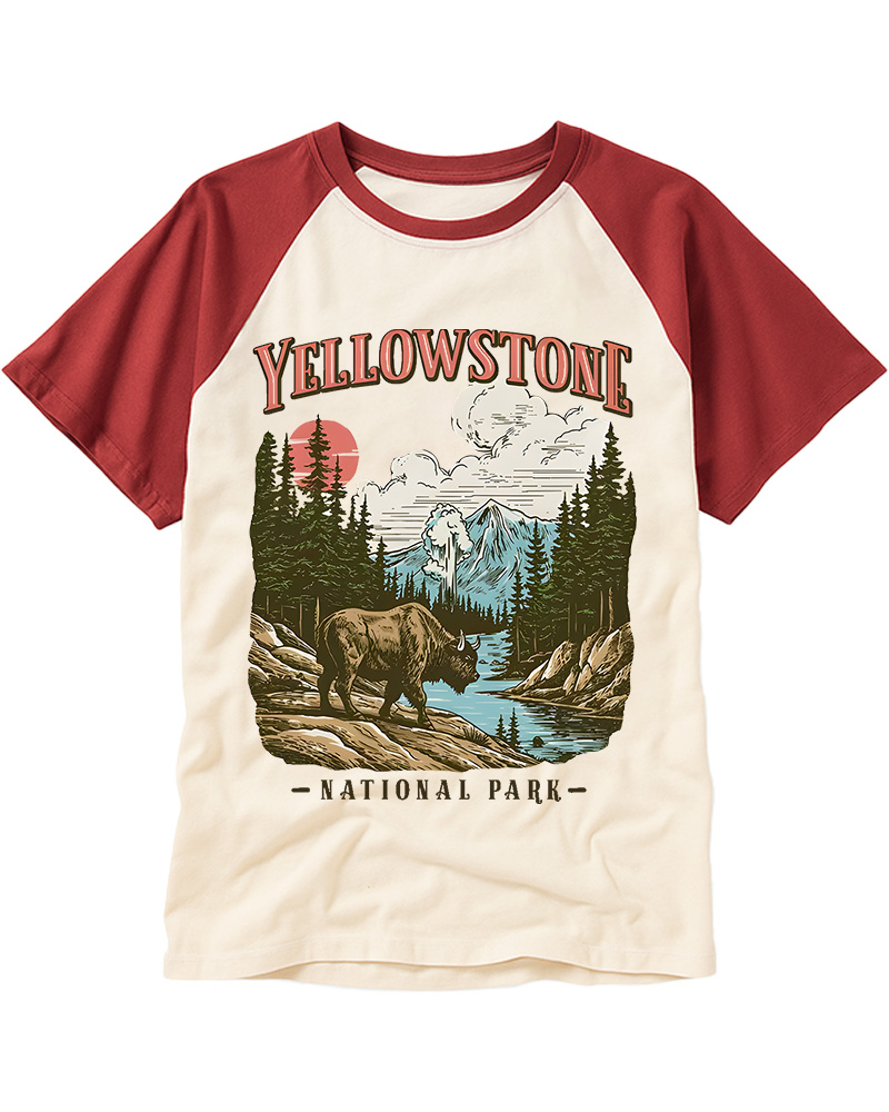 TheRetroTee Yellowstone National Park Pin-Up Raglan Baseball T-Shirt