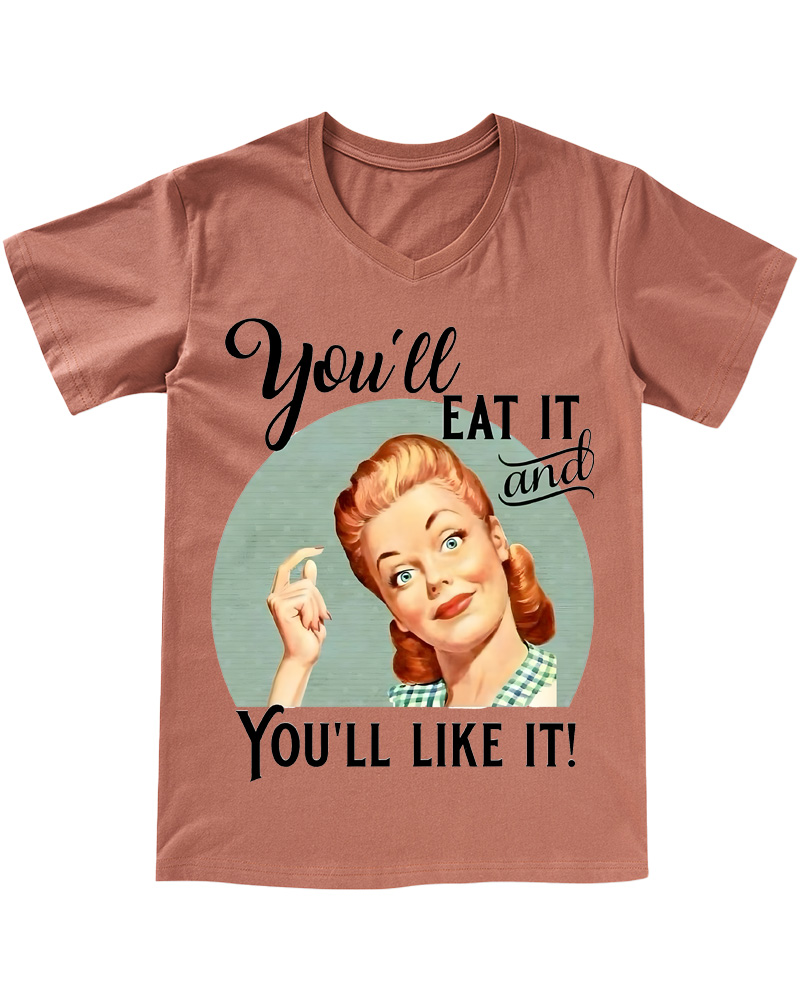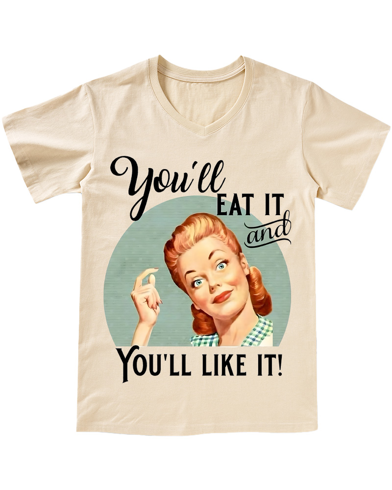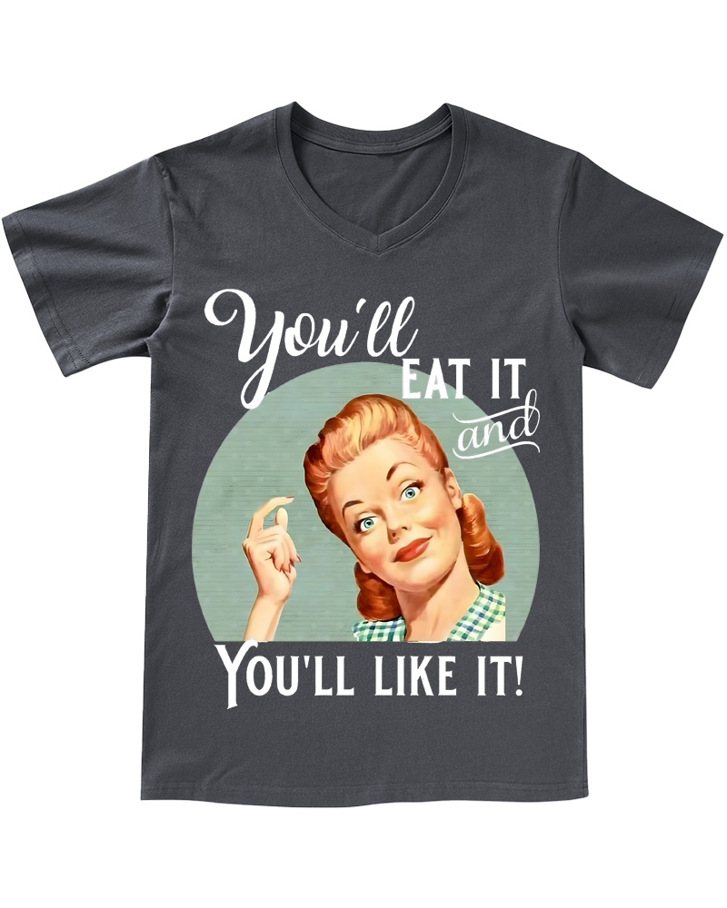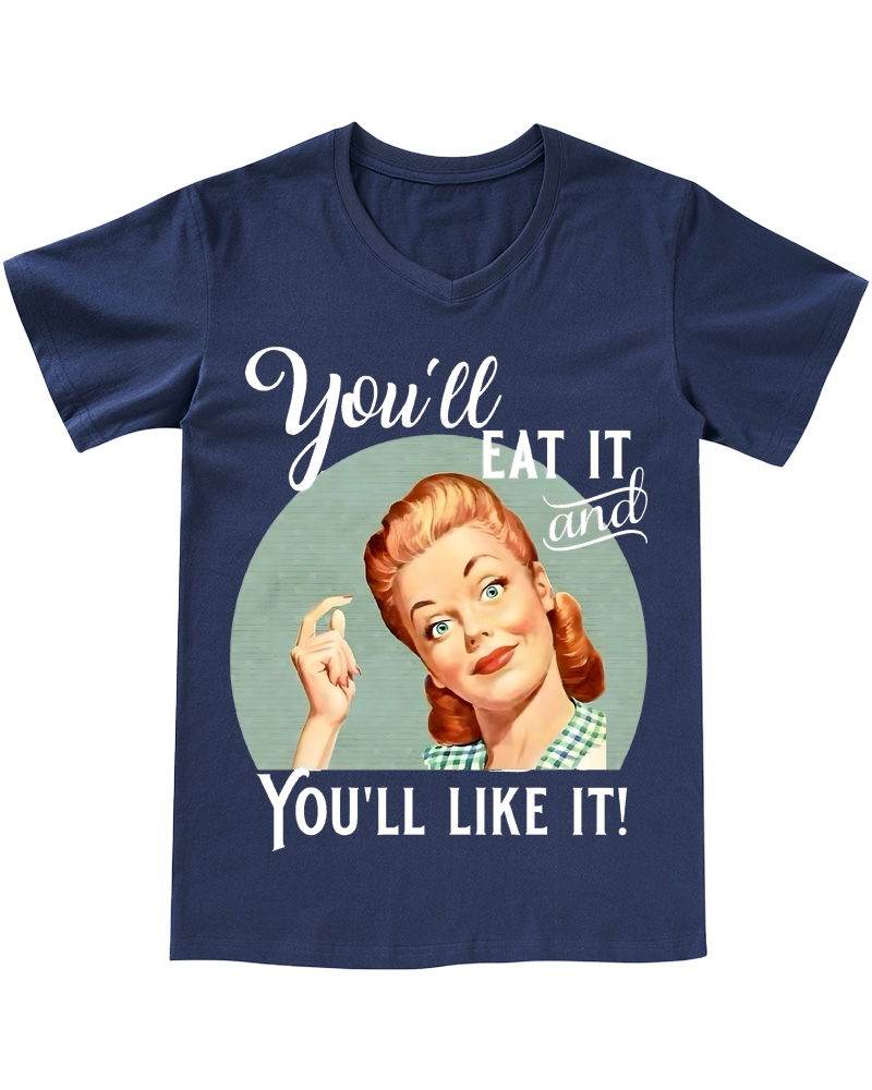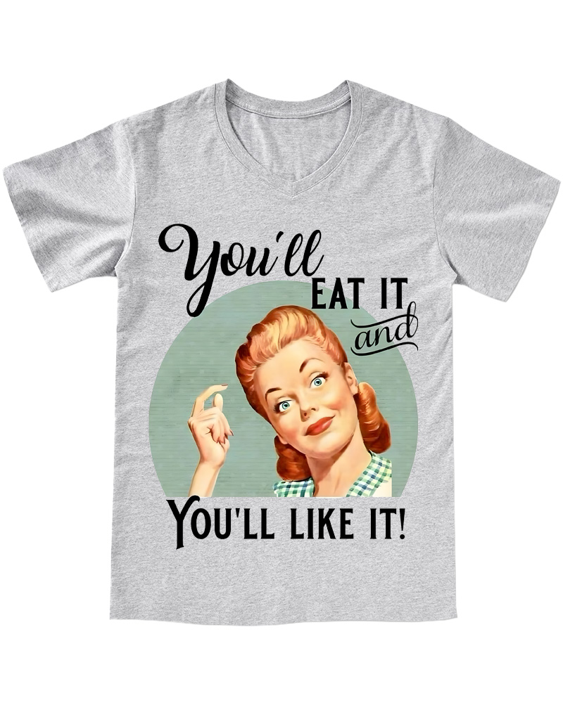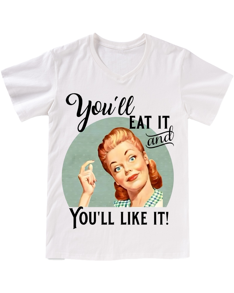 TheRetroTee Vintage Witty Retro Graphic Pin-up V-neck T-Shirt